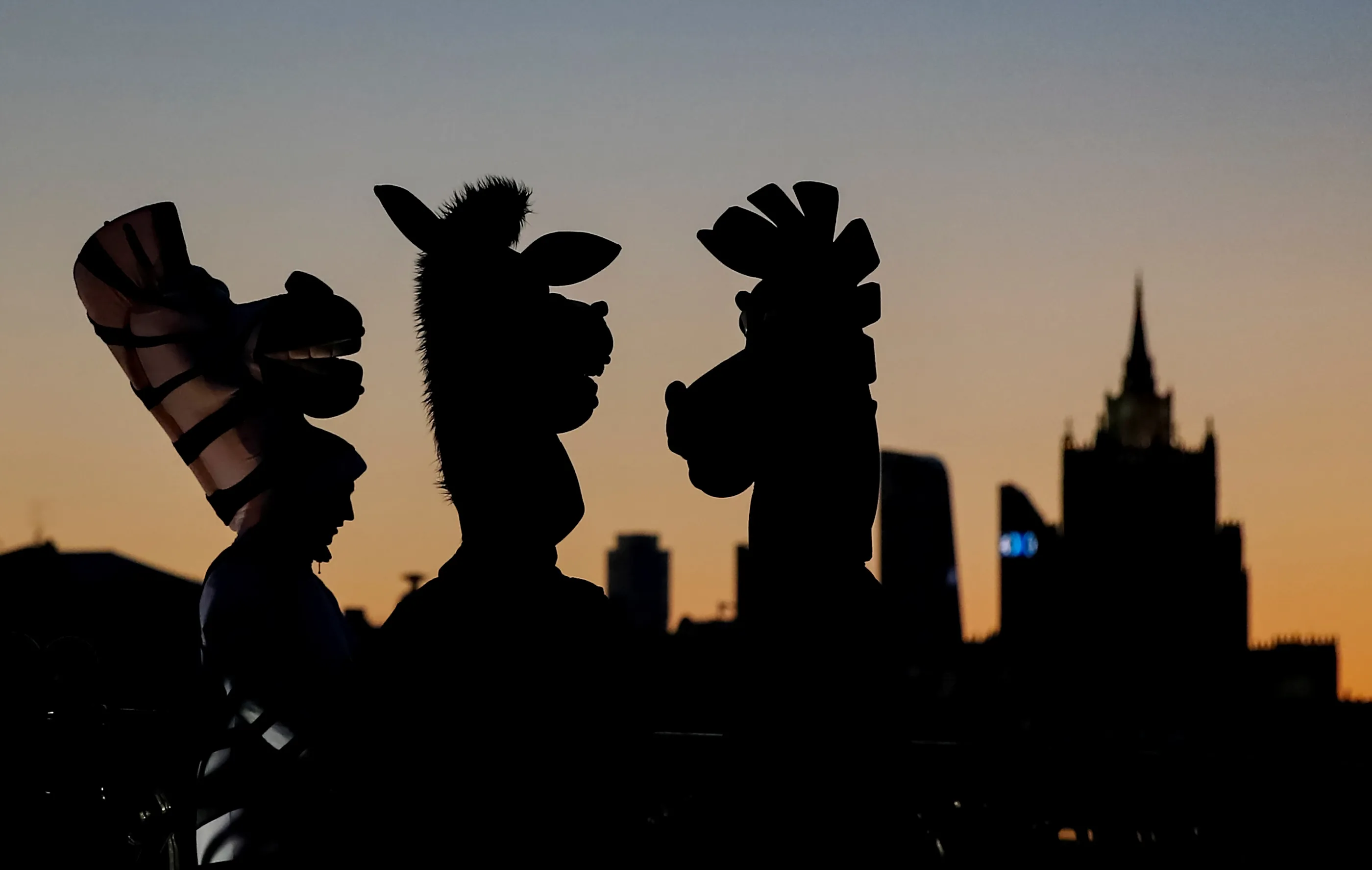 People dressed in costumes of zebras gather at a bridge in central Moscow, Russia on April 2, 2019. (Photo by Maxim Shemetov/Reuters)
