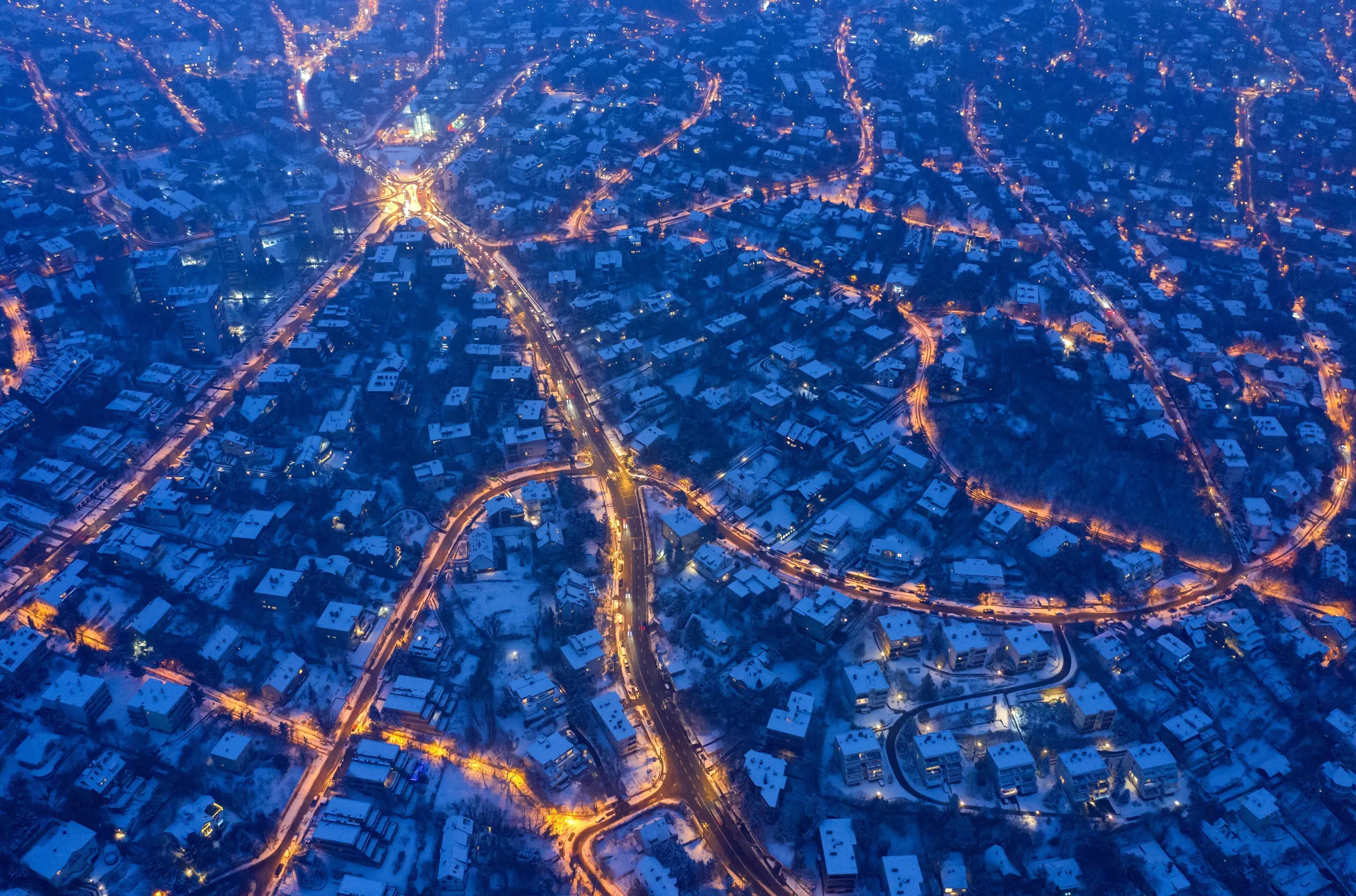 Vehicles illuminate streets among snow covered houses in a suburb of Budapest, Hungary, 09 January 2019. (Photo by Balazs Mohai/EPA/EFE)