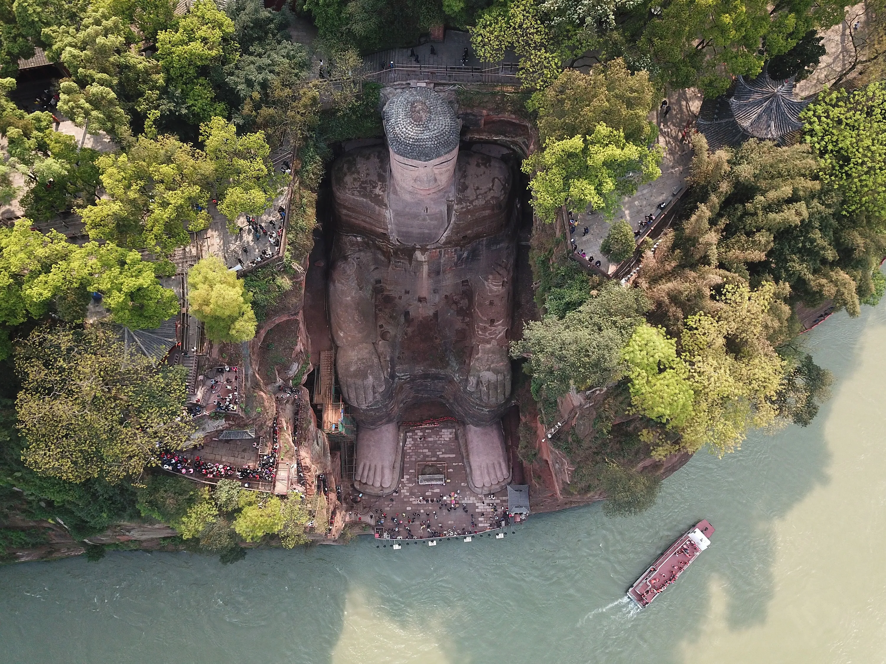 The giant statue of Buddha in Leshan, southwest China's Sichuan Province was reopened to visitors in early April 2019 after undergoing repairs over the past six months. Standing at 71 meters tall at the confluence of three rivers, it is believed to be the world's tallest stone Buddha statue. It was carved out of a cliff face of Cretaceous red sandstone. It was its ninth large-scale repairs since 1949. The removal of the scaffolding is expected to complete by the end of March. (Photo by Imaginechina/Shutterstock)