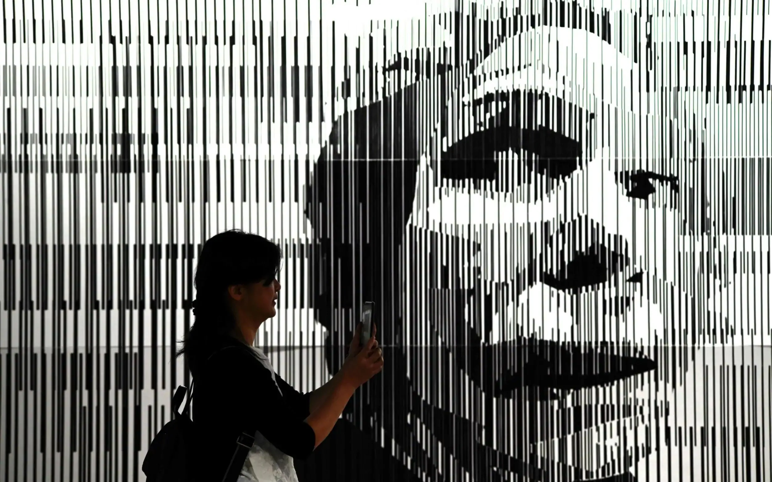 A visitor takes a photo of an art work entitled “Anxiety” during a “Tape Art” exhibition by Tape That, an artist collective based in Berlin, in Taipei on July 16, 2019. The exhibition is on display until September 1. (Photo by Sam Yeh/AFP Photo)