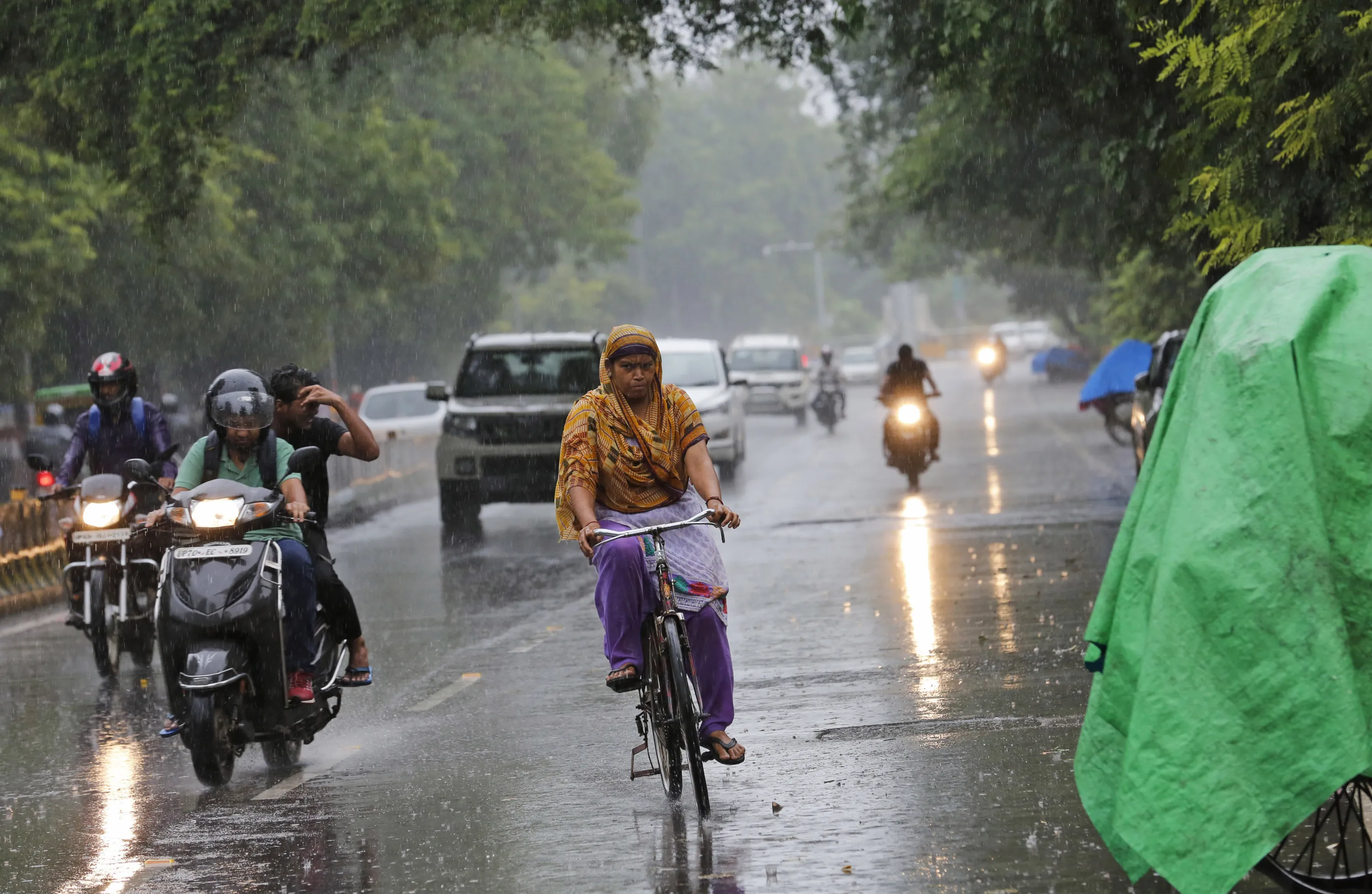 A woman rides a bicycle in the rain in Prayagraj, in the northern Indian state of Uttar Pradesh, Wednesday, July 24, 2019. Lightning has killed more than 50 people in July, including more than 30 in Uttar Pradesh state, with thunderstorms and heavy rains lashing north and eastern India. (Photo by Rajesh Kumar Singh/AP Photo)