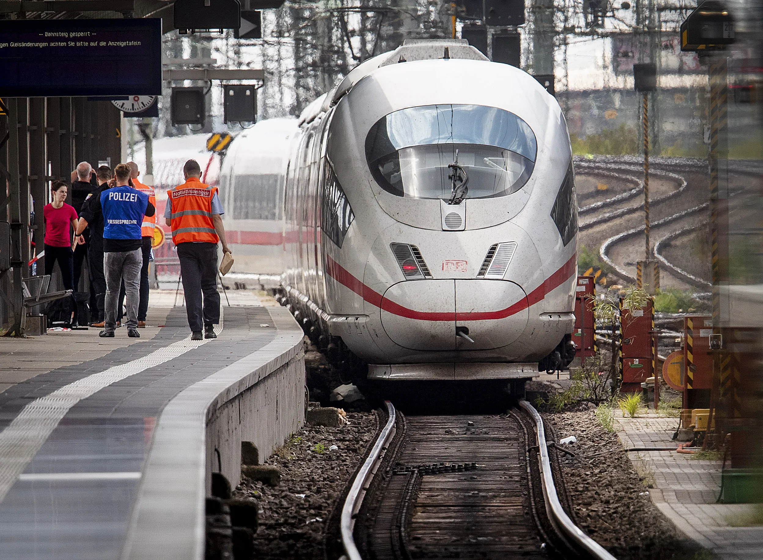 A police officer walks next to an ICE highspeed train at the main station in Frankfurt, Germany, Monday, July 29, 2019. An 8-year-old boy was run over by a train and killed at Frankfurt's main station on Monday after a man pushed him and his mother onto the tracks. The mother was able to escape but the boy was hit and run over by the train and suffered fatal injuries. (Photo by Michael Probst/AP Photo)