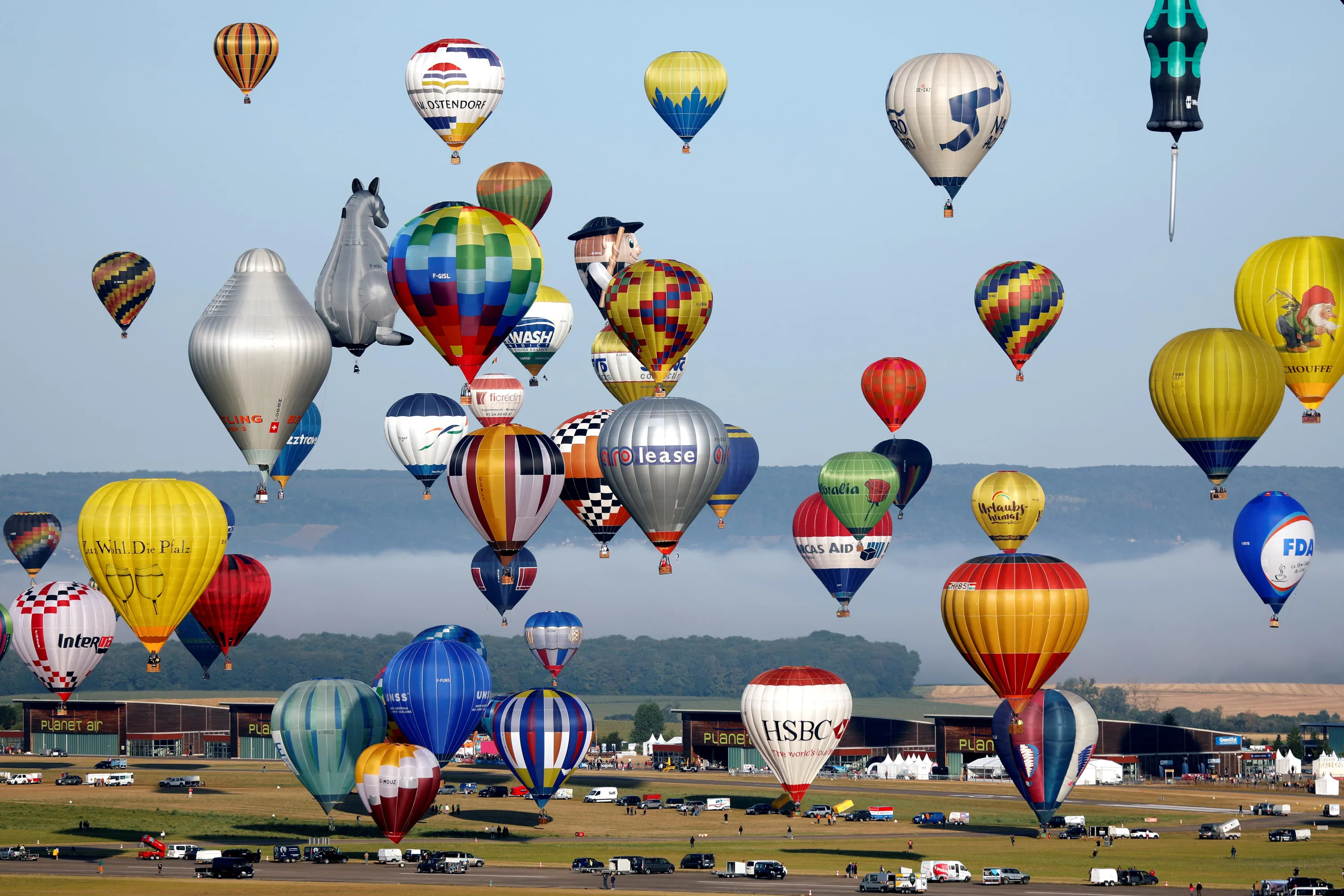 Hundreds of hot air balloons take part in the Great Line at the Mondial Air Ballons festival, in an attempt to break the 2017 record of 456 balloons aligning in an hour, in Chambley, France, July 29, 2019. (Photo by Charles Platiau/Reuters)