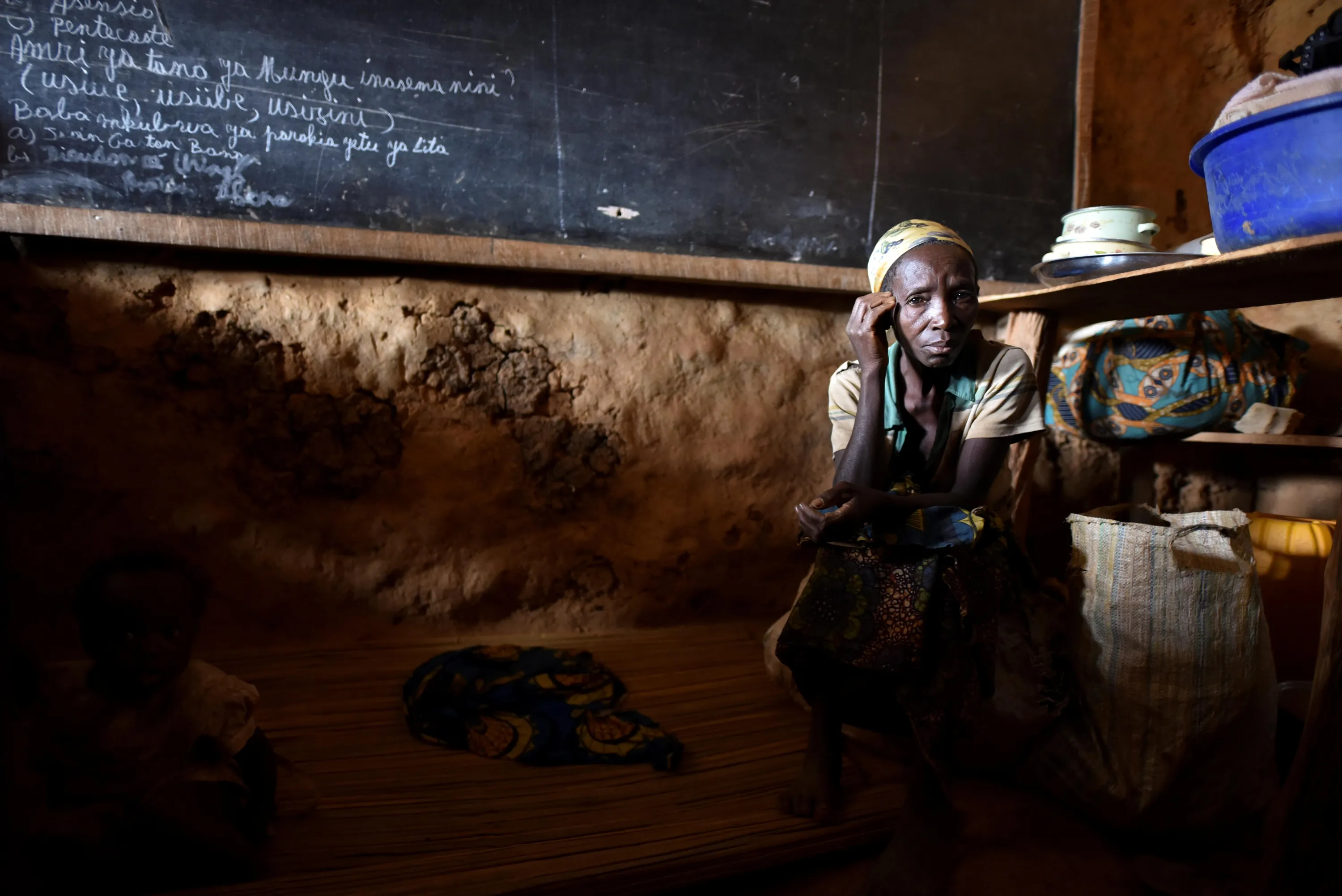 An internally displaced Congolese woman and her child sit inside a classroom used by victims of ethnic violence in Iga Barriere, Ituri province, in the eastern Democratic Republic of Congo on June 24, 2019. (Photo by Olivia Acland/Reuters)