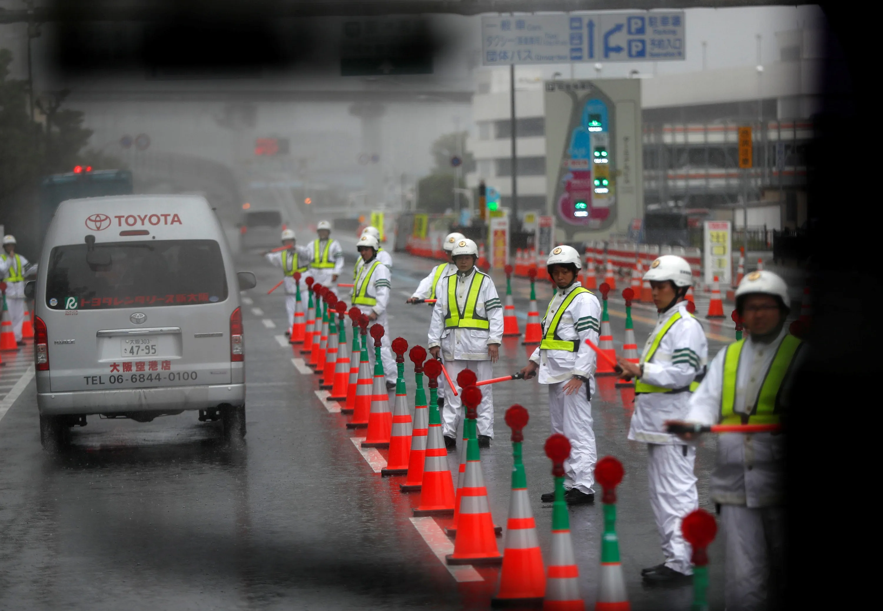 Police officers checking vehicles are seen through a bus window before the arrival of U.S. President Donald Trump, who is attending the G20 leaders summit, near Osaka International Airport in Toyonaka, Osaka prefecture, Japan June 27, 2019. (Photo by Issei Kato/Reuters)