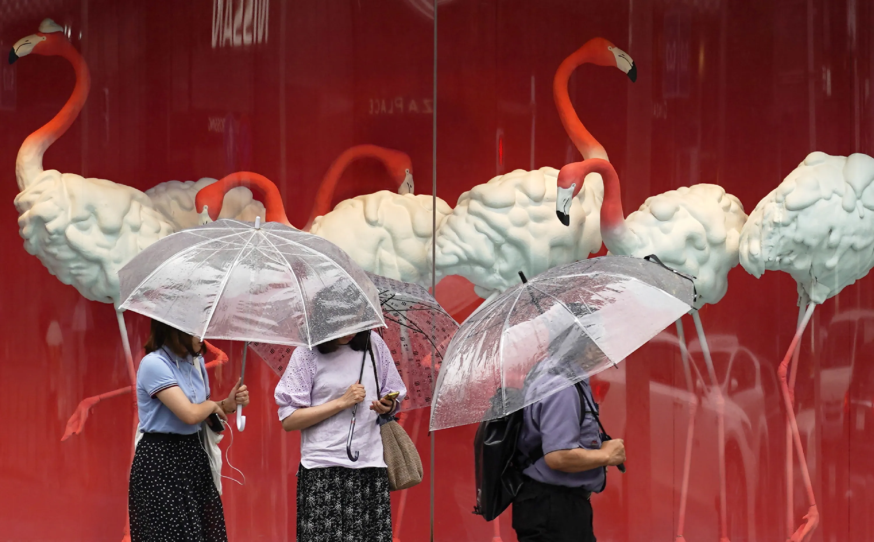 People walk in the rain through a shopping area Monday, July 1, 2019, in Tokyo. (Photo by Eugene Hoshiko/AP Photo)