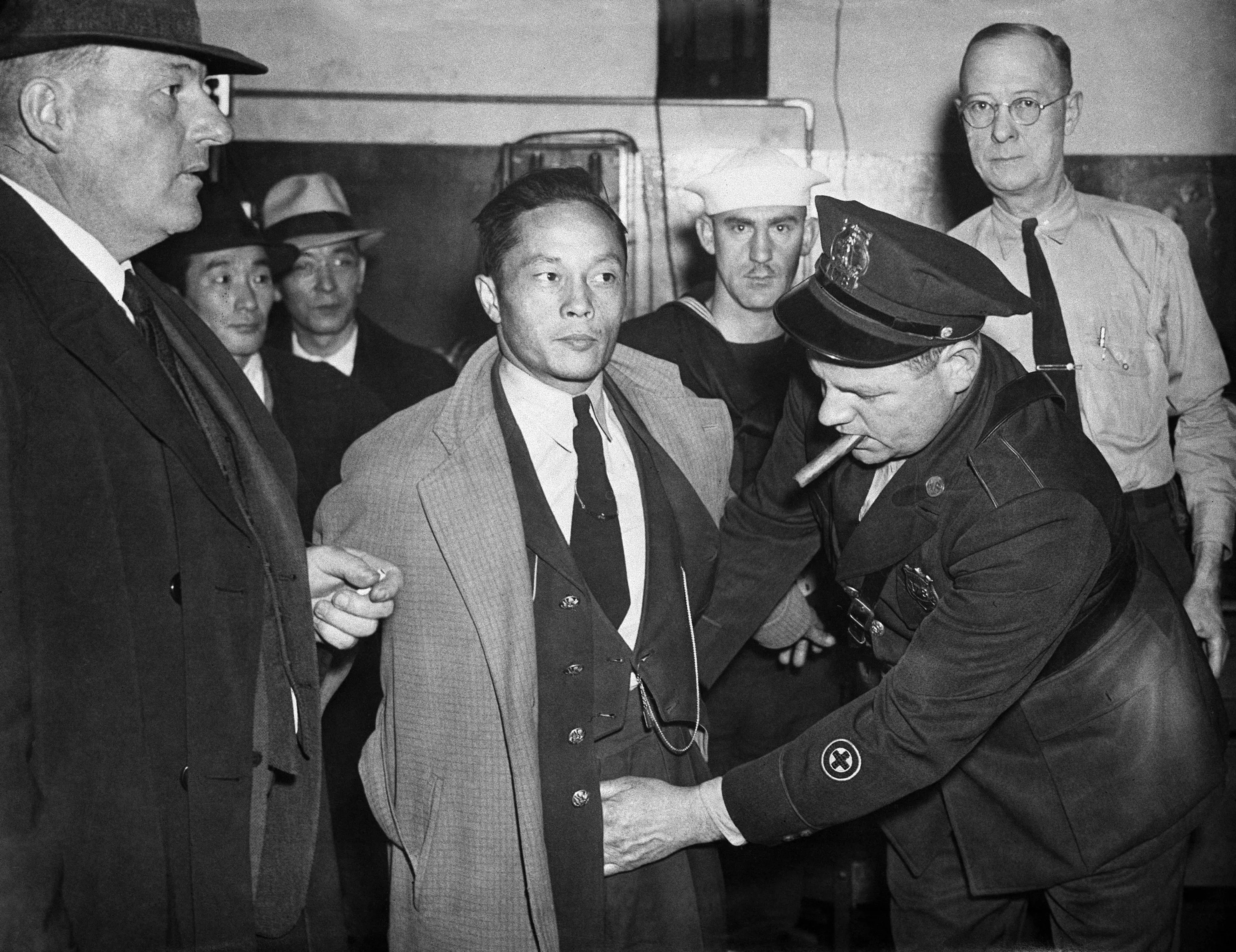 This December 7, 1941 file photo shows a Japanese man under arrest in the roundup at Norfolk, Va., being searched by a policeman after Japan's declaration of war on the U.S. Beliefs that Hispanics and Asians living in the U.S. won't assimilate or refuse to speak English are based on stereotypes that scholars say are linked to notions of white supremacy. Throughout American history, Hispanics and Asians have been pressured to adopt the customs of the mainstream white population. The pressure came even as some laws forbade them from voting, intermarrying and having access to education and public facilities. (Photo by AP Photo/File)