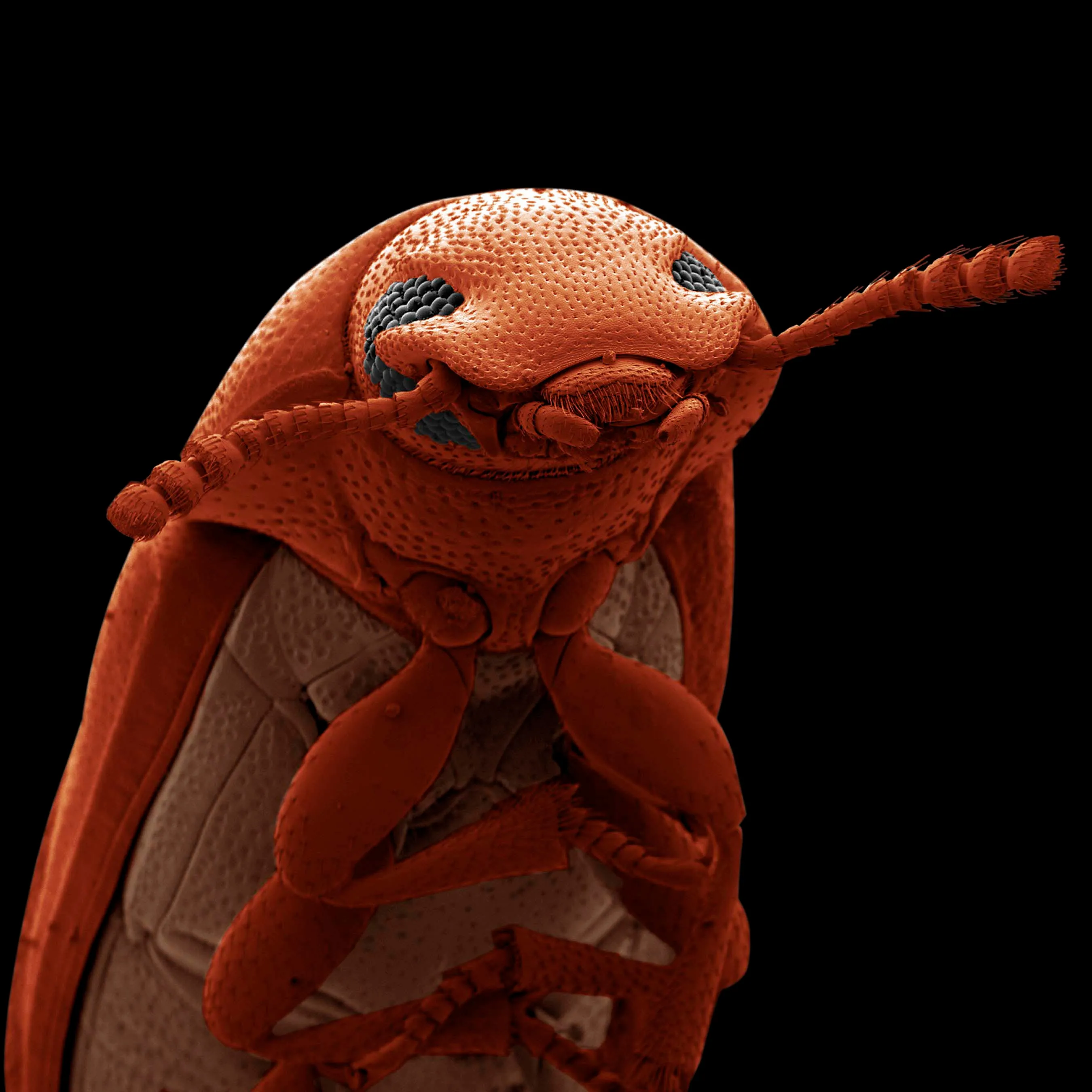 Confused Flour Beetle by David Spears. This small beetle is a pest in stored grain and flour products. The image was captured by a scanning electron micrograph and was then coloured in Photoshop. (Photo by David Spears/2019 Science Photographer of the Year/RPS)
