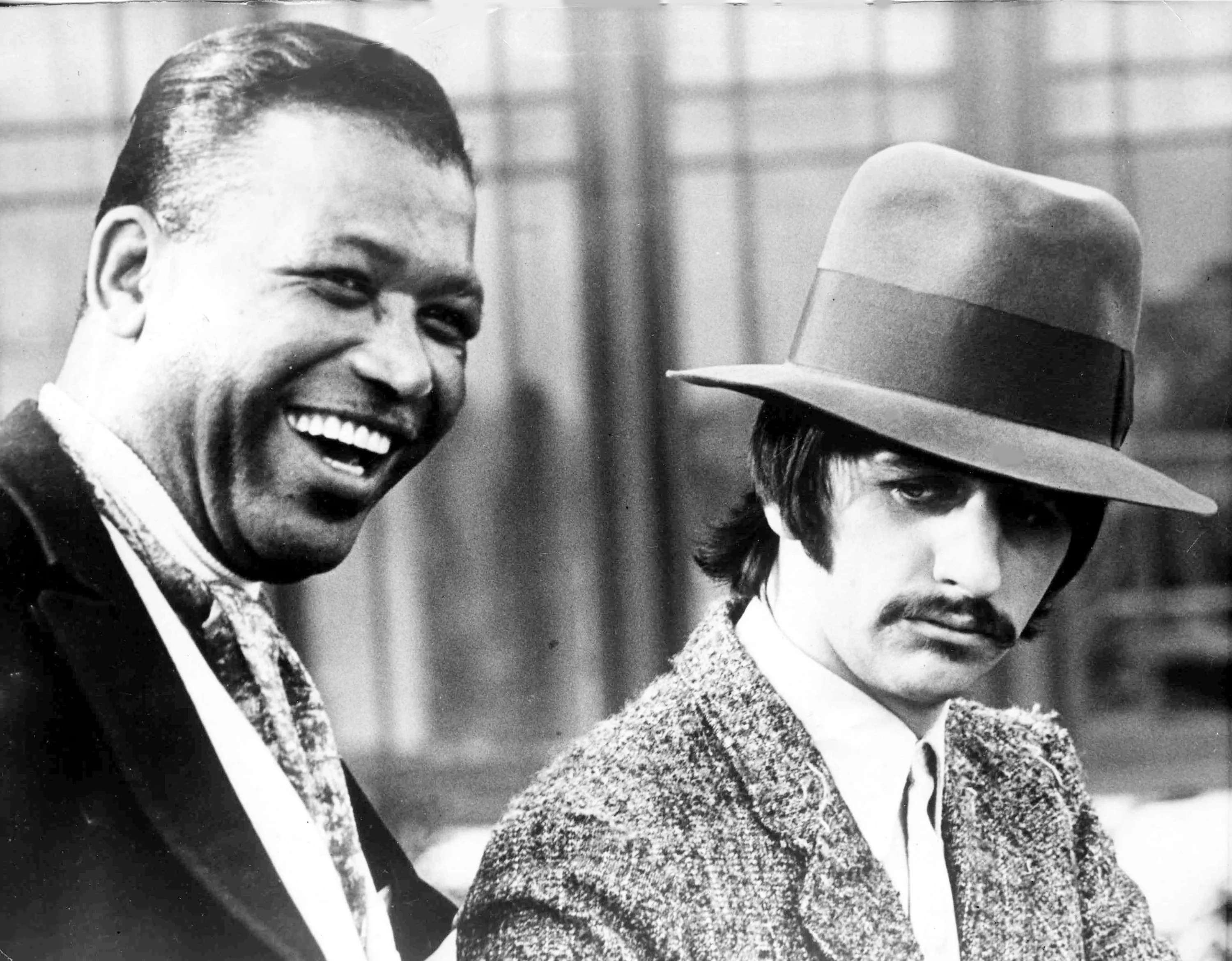 Former American boxing champion Sugar Ray Robinson, left, and Ringo Starr of the pop group The Beatles, on the set of a new film called "Candy", being shot in Rome, Italy, January 11, 1968. (Photo by SAP Photo)