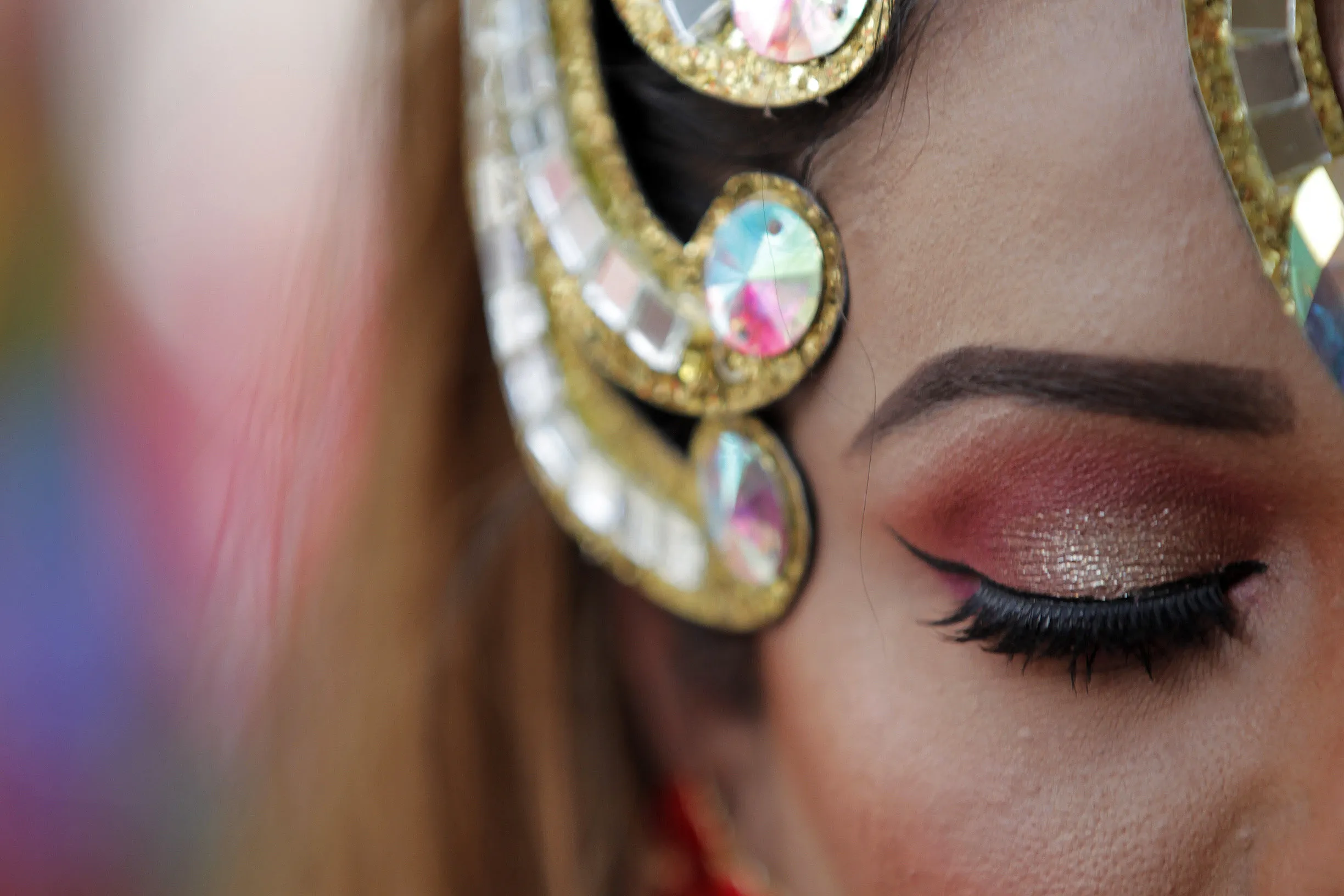 A participant waits to take part in a gay pride parade in Kathmandu, Nepal, Friday, August 16, 2019. Hundreds of lesbians, gays, bisexuals and transgenders paraded through Nepal's capital Friday to demand an end to discrimination against sexual minorities. Nepal is considered a conservative nation, most of its people are Hindu, and many still follow traditional beliefs. (Photo by Niranjan Shrestha/AP Photo)