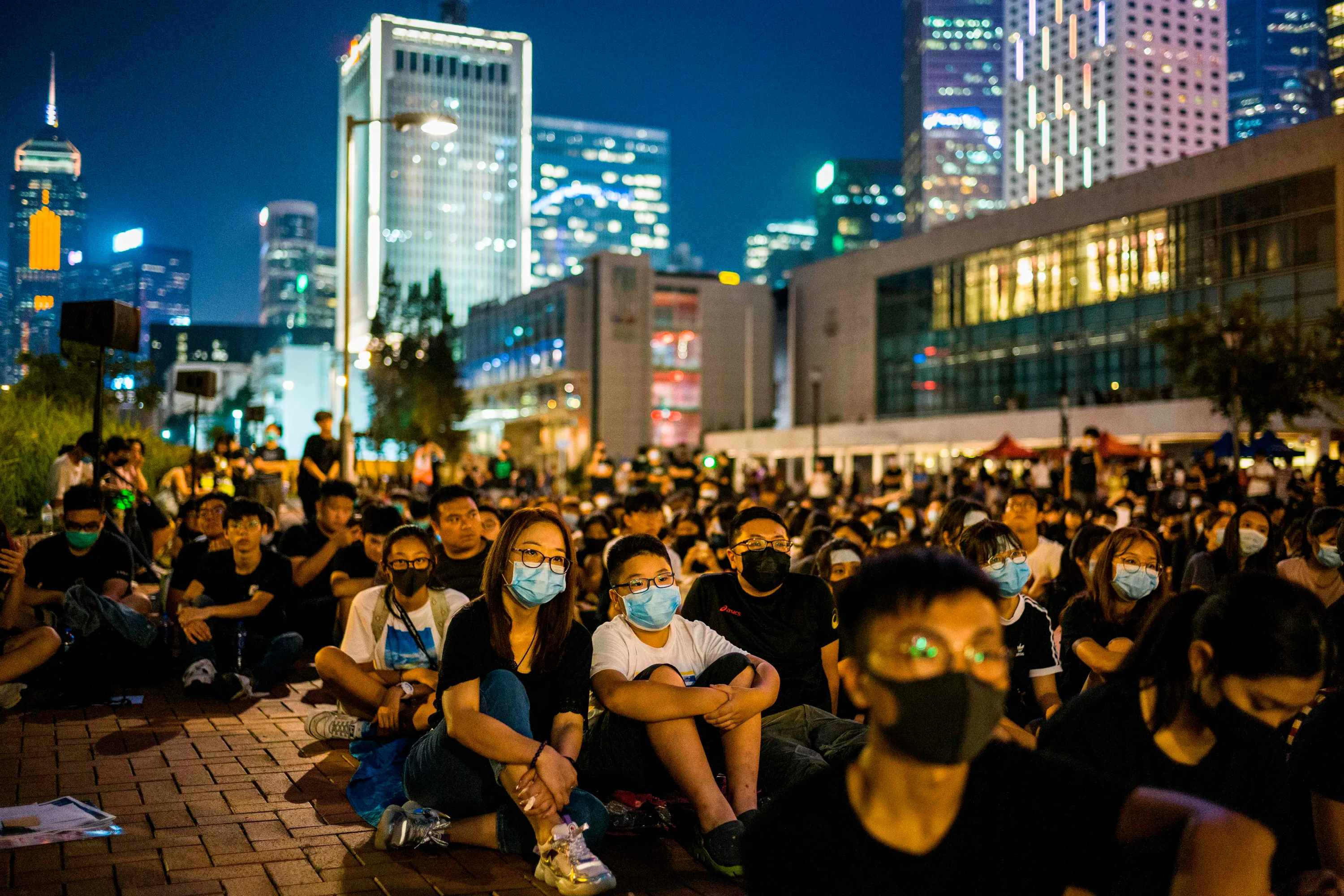 People attend a secondary school student rally at Edinburgh Place in Hong Kong on August 22, 2019. Hong Kong student leaders on Thursday announced a two-week boycott of lectures from the upcoming start of term, as they seek to keep protesters on the streets and pressure on the government. (Photo by Anthony Wallace/AFP Photo)
