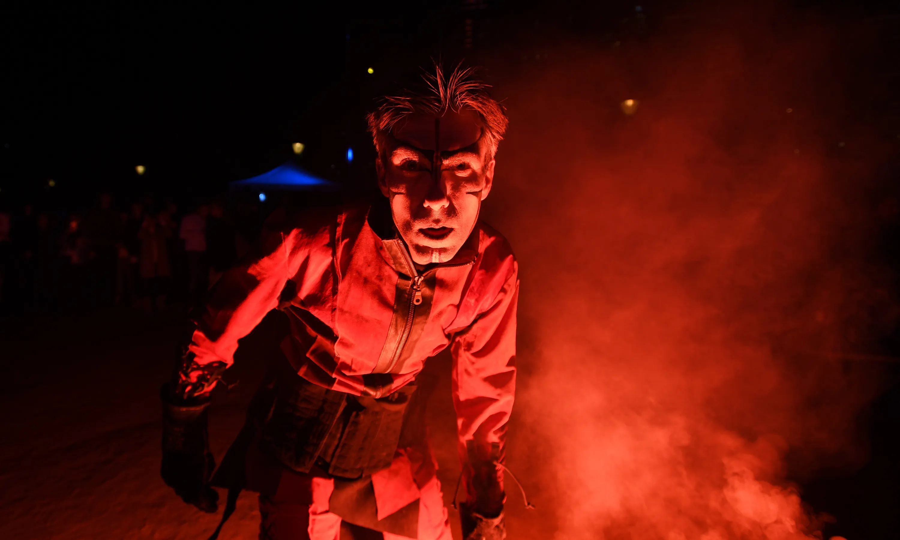 Performers are seen in action at the opening night of White Night at Birrarung Marr, Melbourne, Australia, 22 August 2019. White night, a festival of art and culture has launched this evening. (Photo by James Ross/EPA/EFE)