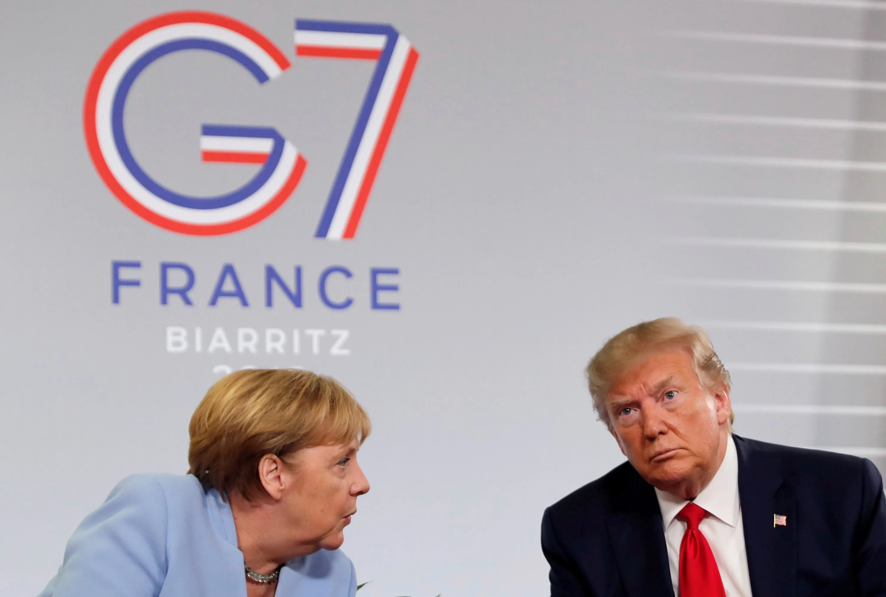 U.S. President Donald Trump meets German Chancellor Angela Merkel for bilateral talks during the G7 summit in Biarritz, France, August 26, 2019, 2019. (Photo by Carlos Barria/Reuters)