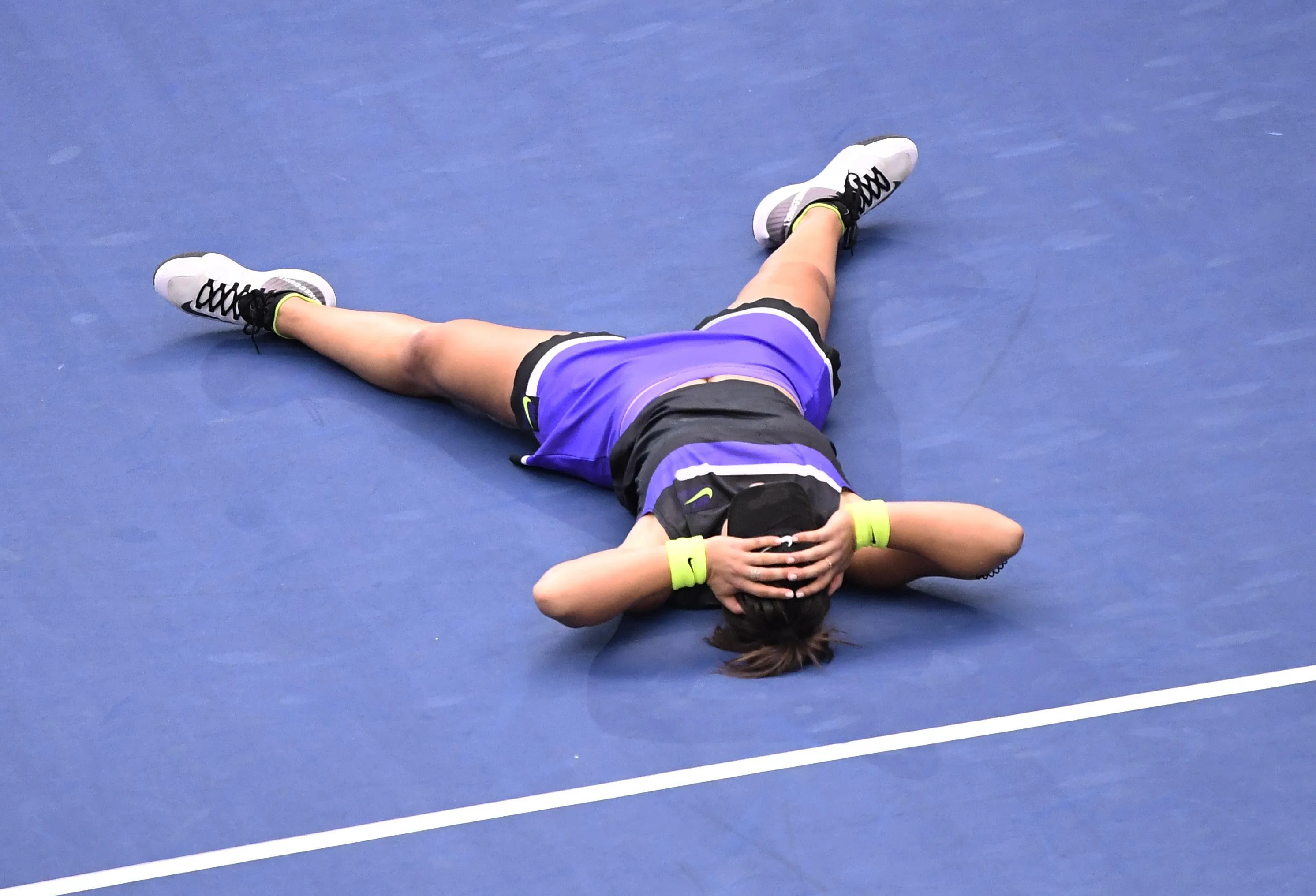 Bianca Andreescu of Canada reacts as she wins against Serena Williams of the US during the Women's Singles Finals match at the 2019 US Open at the USTA Billie Jean King National Tennis Center in New York on September 7, 2019. (Photo by Danielle Parhizkaran/USA TODAY Sports)