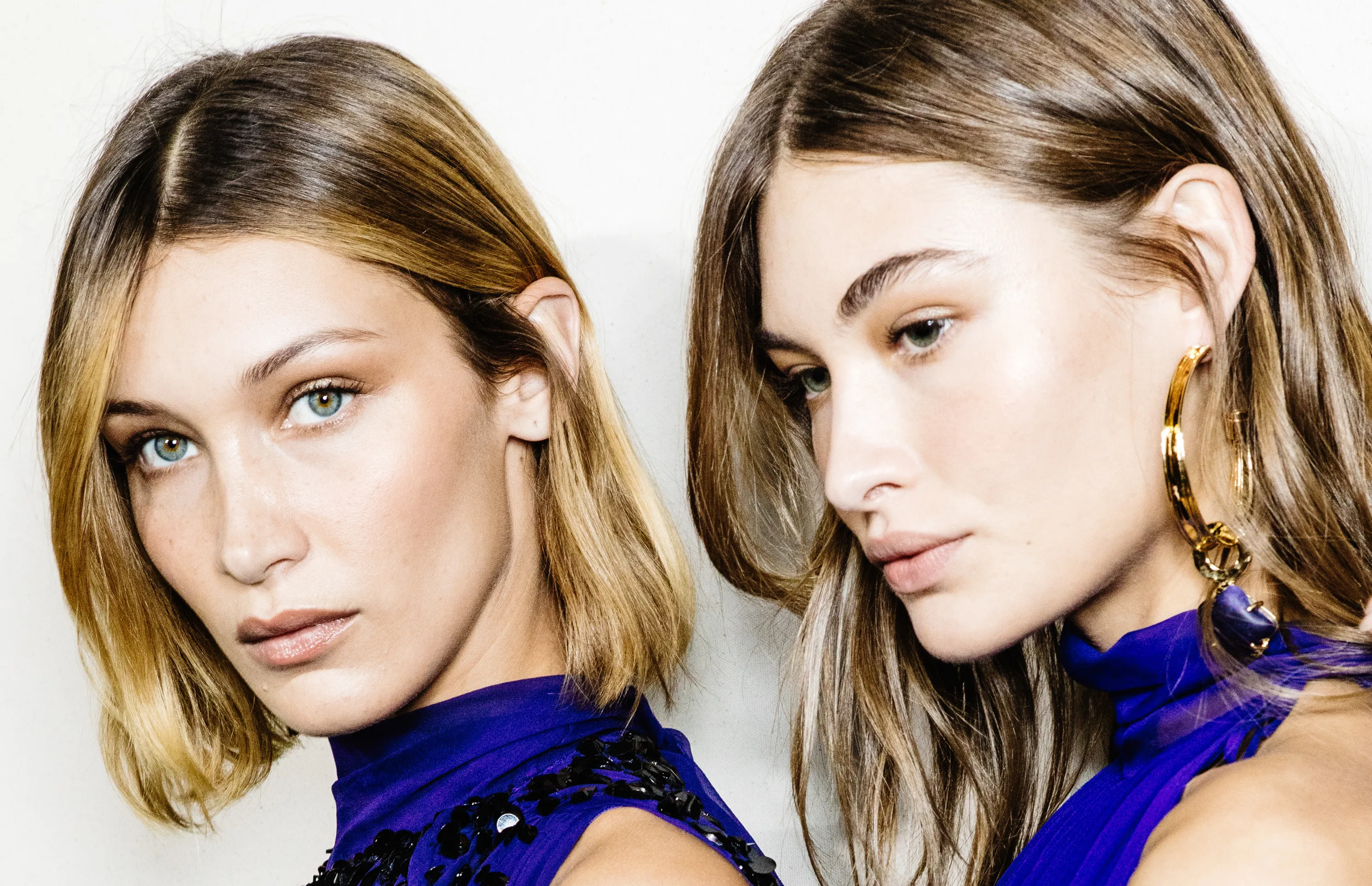 Bella Hadid (L) and Grace Elizabeth pose during backstage for Alberta Ferretti fashion show during the Milan Fashion Week Spring/Summer 2020 on September 18, 2019 in Milan, Italy. (Photo by Rosdiana Ciaravolo/Getty Images)