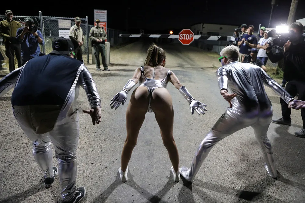 A group of people take the “Naruto run” position before they faux ran at an entrance to Area 51 as an influx of tourists responding to a call to “storm” Area 51, a secretive U.S. military base believed by UFO enthusiasts to hold government secrets about extra-terrestrials, is expected in Rachel, Nevada, U.S. September 20, 2019. (Photo by Jim Urquhart/Reuters)