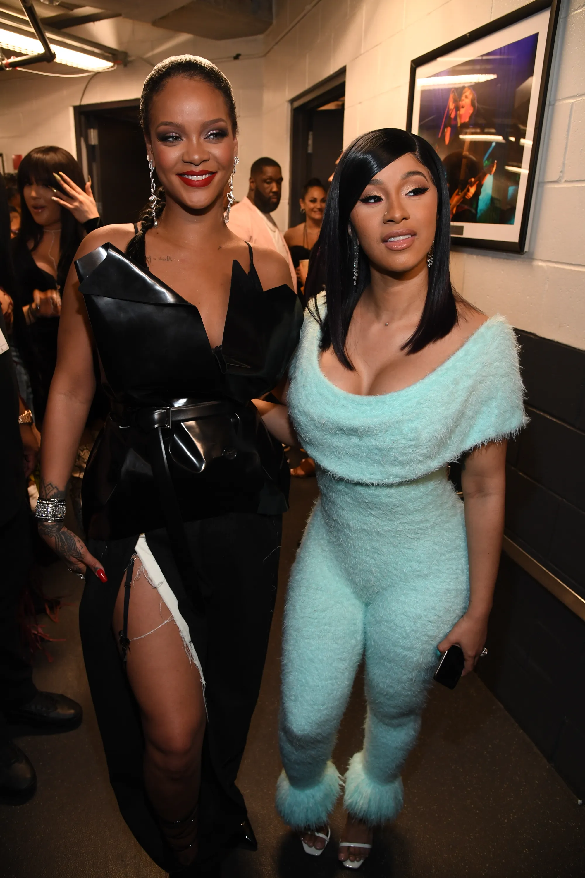 Rihanna and Cardi B pose backstage for Savage X Fenty Show Presented By Amazon Prime Video – Backstage at Barclays Center on September 10, 2019 in Brooklyn, New York. (Photo by Kevin Mazur/Getty Images)