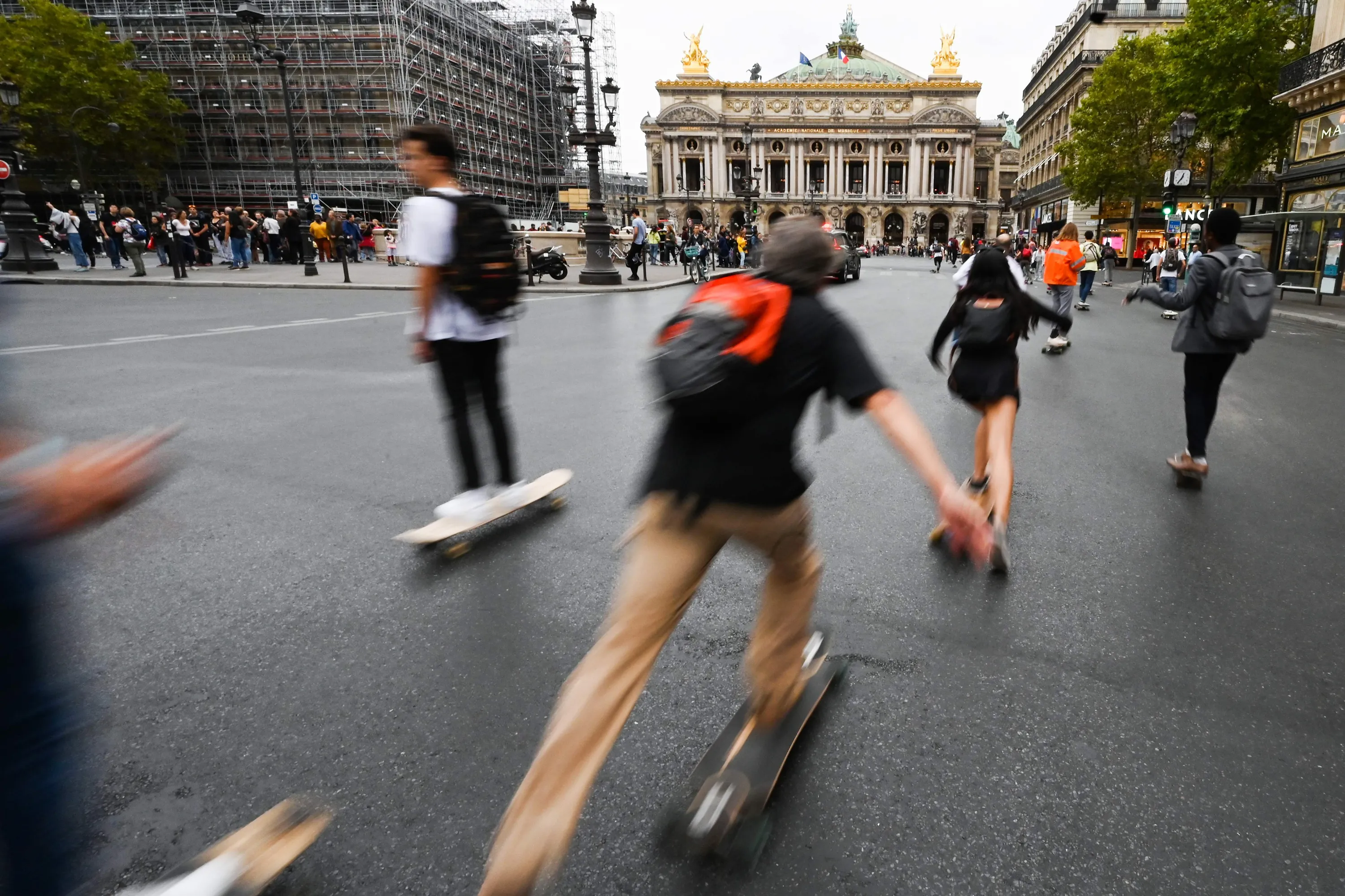 People skate on the Opera Avenue in the French capital Paris, on September 22, 2019, during the fifth edition of “day without cars”. (Photo by Dominique Faget/AFP Photo)
