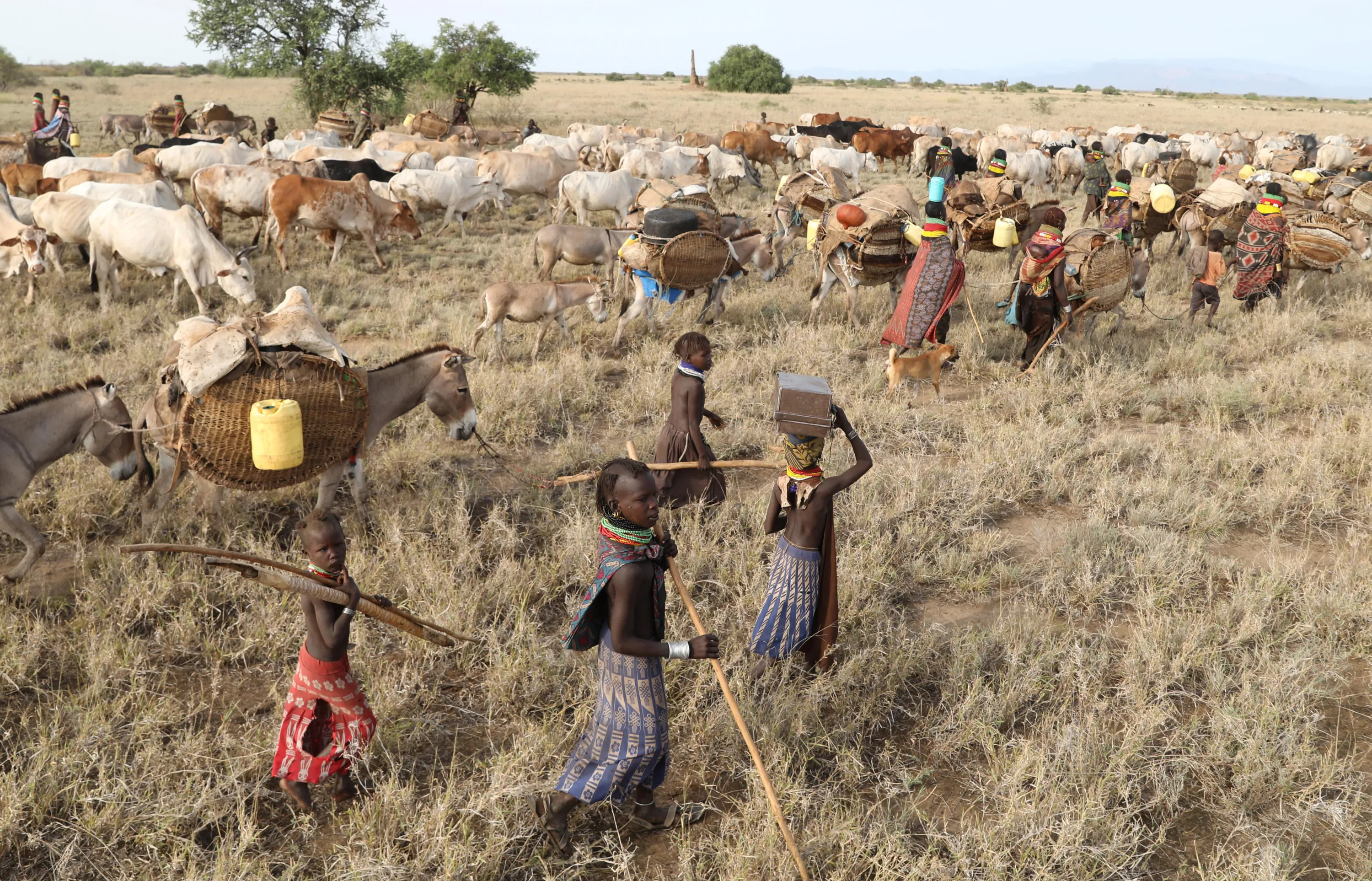 Turkana people migrate in order to find water and grazing land for their cattle in Ilemi Triangle, Kenya, July 23, 2019. (Photo by Goran Tomasevic/Reuters)