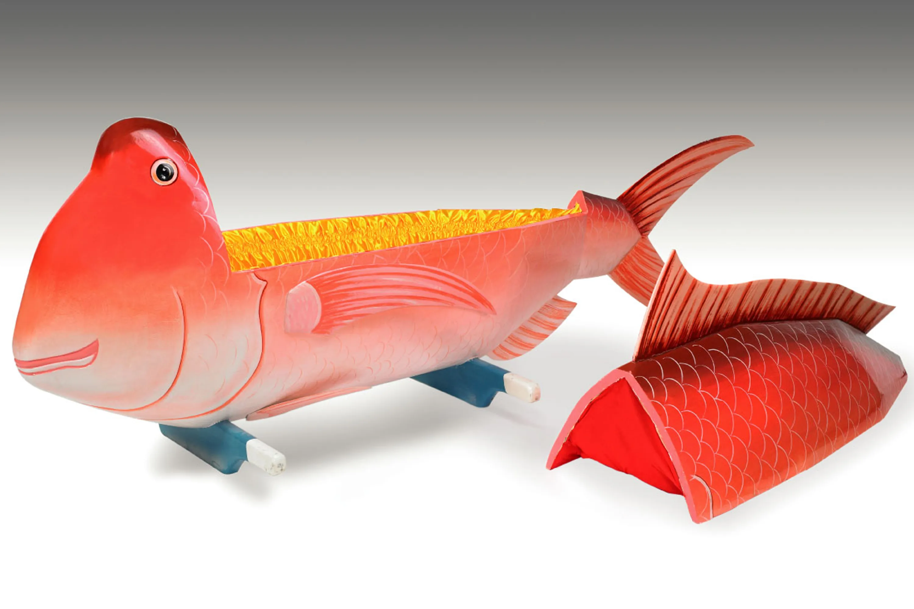 A coffin in the shape of a fish which has been handmade. (Photo by Caters News Agency)