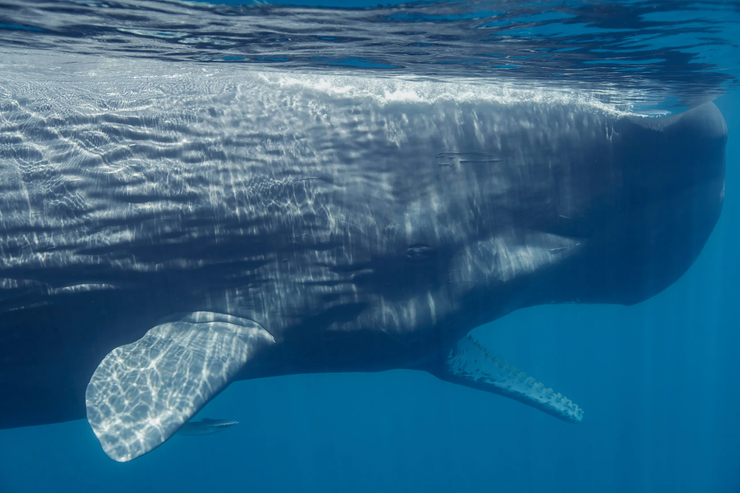 Getting up close to a sperm whale. This one is part of the pod that Blue Planet filmed off Sri Lanka, where tourism is making the coast less safe. (Photo by Andrew Sutton/The Guardian)