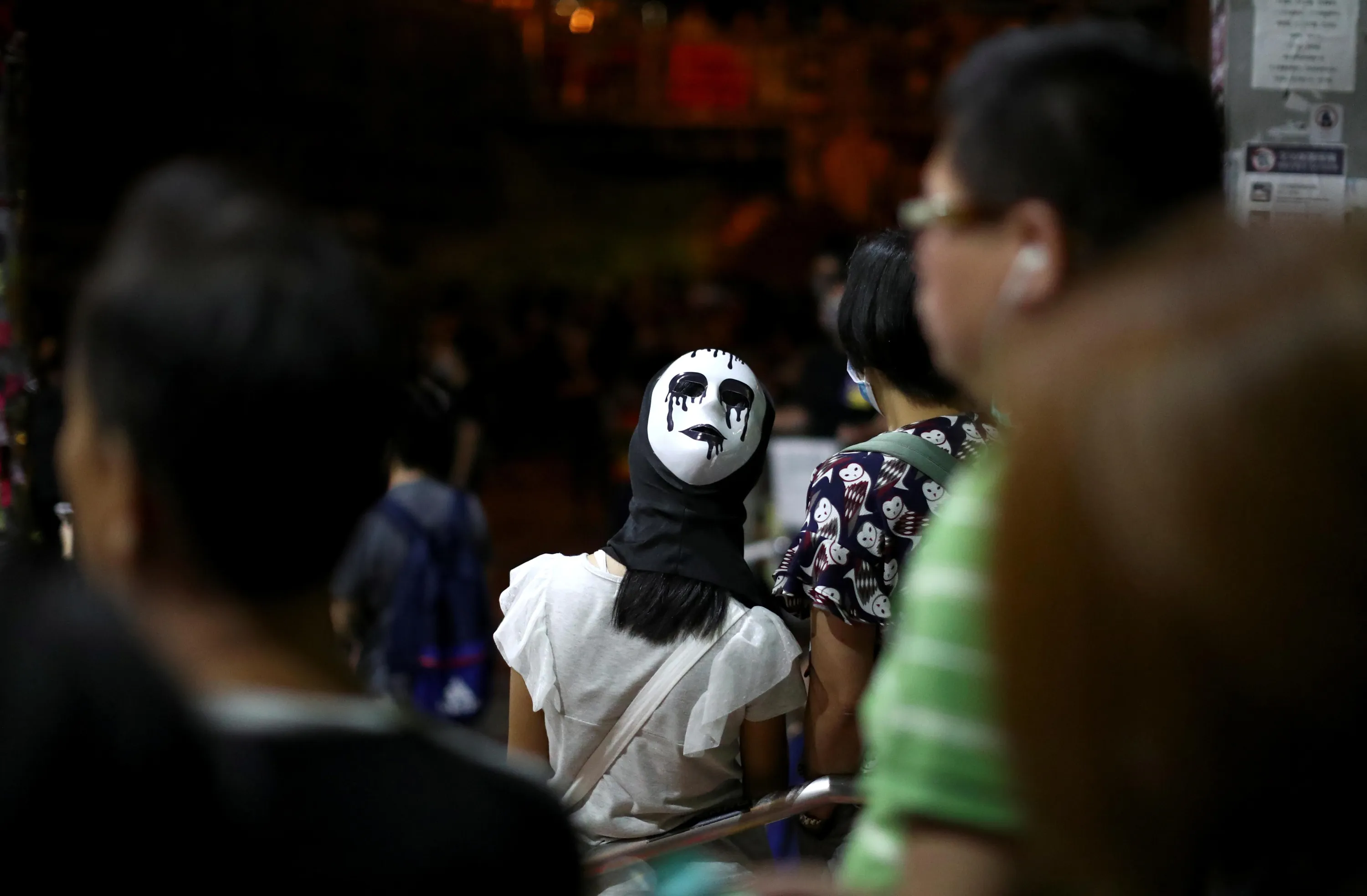 An anti-government protester wears a mask during a demonstration in Wong Tai Sin district, in Hong Kong, October 4, 2019. (Photo by Athit Perawongmetha/Reuters)