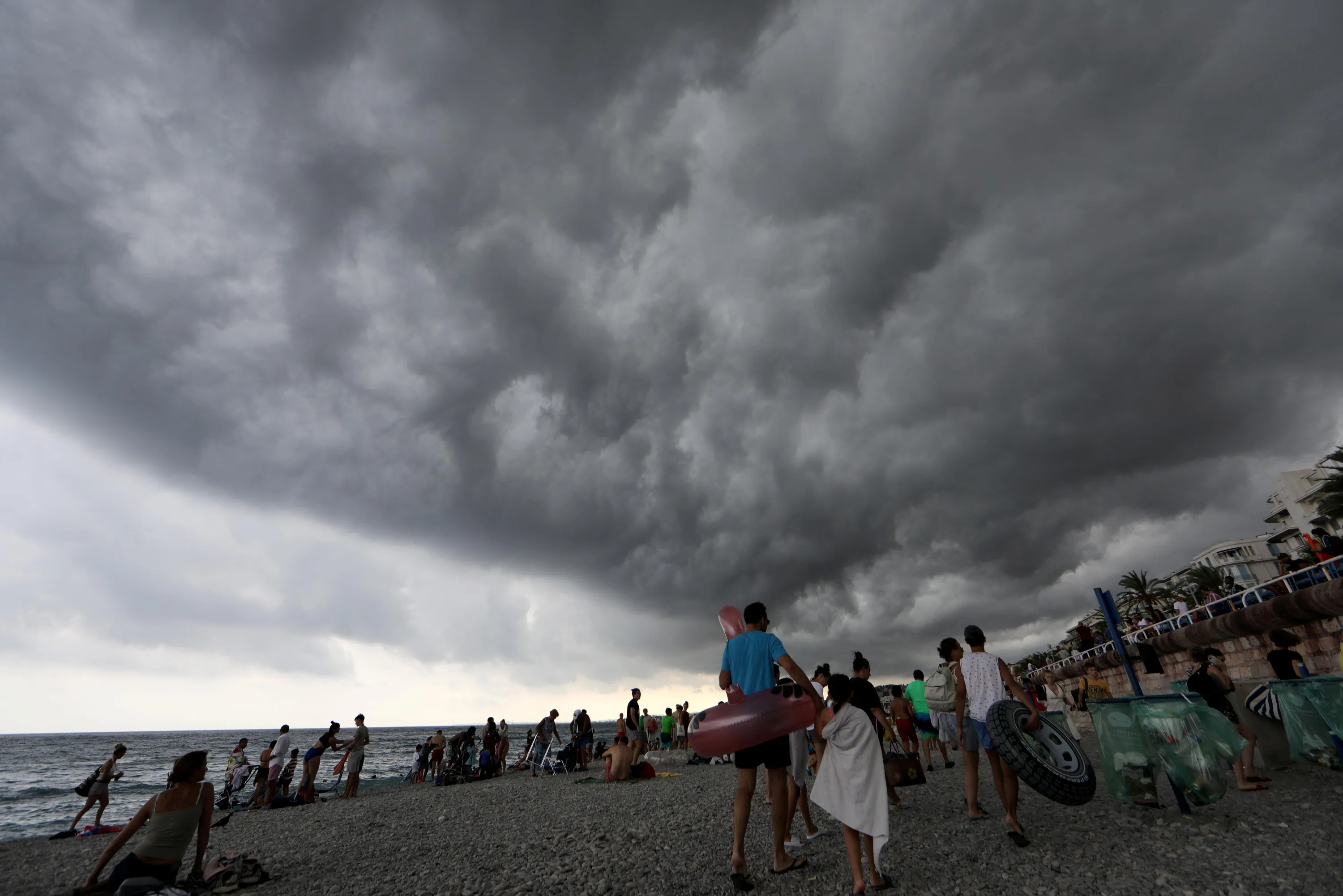 People leave the beach as a storm approaches in Nice, France on August 12, 2019. (Photo by Eric Gaillard/Reuters)