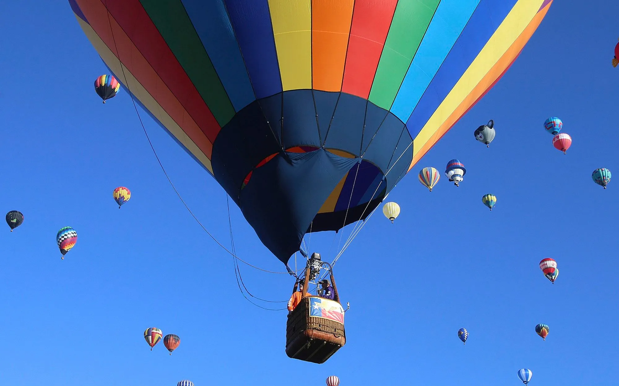 Hot air balloons fly over Albuquerque, N.M., at the Albuquerque International Balloon Fiesta Sunday, October 6, 2019. (Photo by Jerry Larson/Waco Tribune-Herald via AP Photo)
