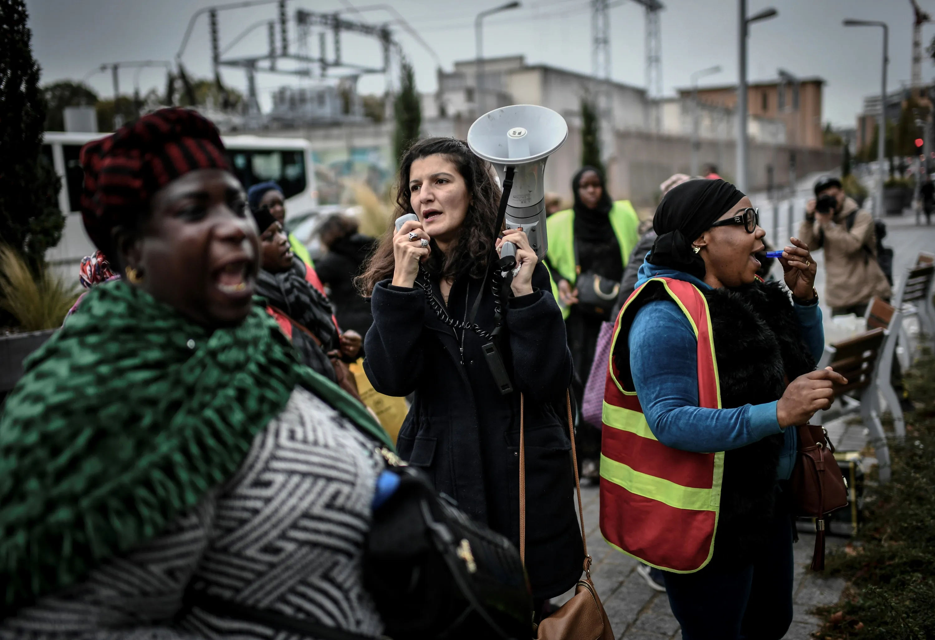 Chamber maids of the Ibis Batignolles Hotel demonstrate, on October 17, 2019 outside the Accor headquarters in Paris, on the day marking the third month of their strike to call for to call for better working conditions. (Photo by Stephane De Sakutin/AFP Photo)