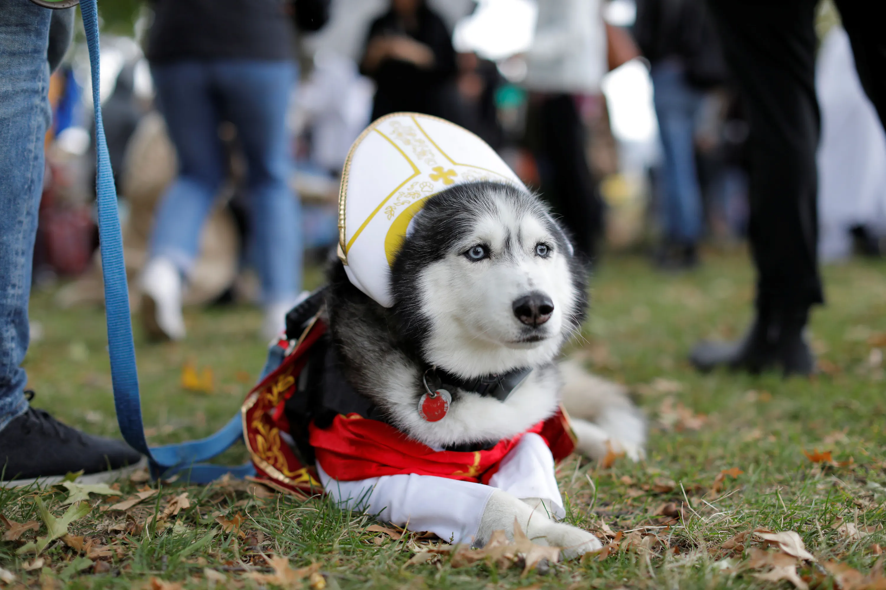 Keiko the Husky is dressed as The Pope at the Tompkins Square Halloween Dog Parade in Manhattan, New York City, U.S., October 20, 2019. (Photo by Andrew Kelly/Reuters)