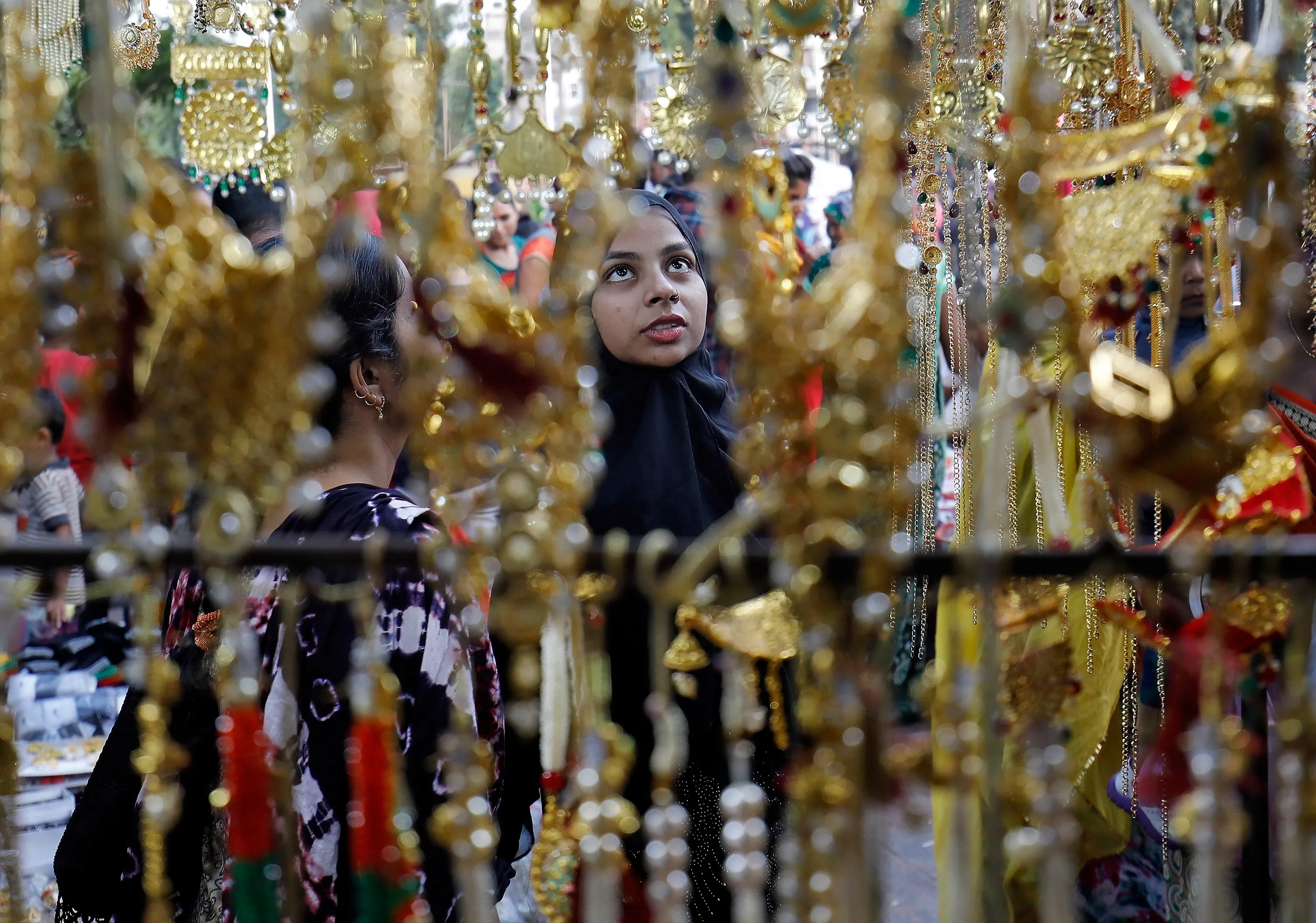 Women buy artificial jewellery and decorative items at a market ahead of Diwali, the Hindu festival of lights, in Ahmedabad, India, October 18, 2019. (Photo by Amit Dave/Reuters)
