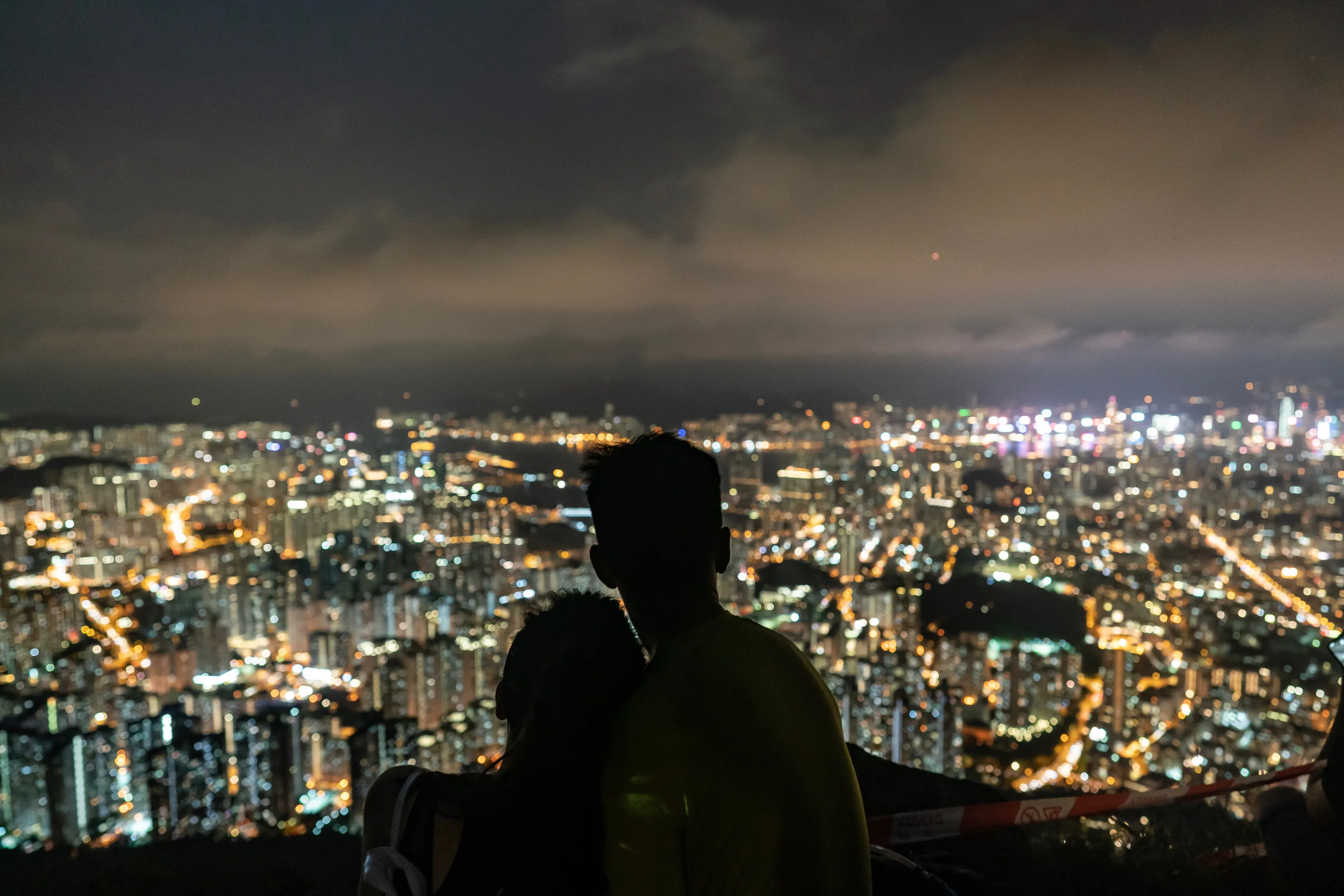 A couple of pro-democracy supporters enjoy a moment as they gather on Lion Rock during mid-autumn festival on September 13, 2019 in Hong Kong, China. (Photo by Anthony Kwan/Getty Images)