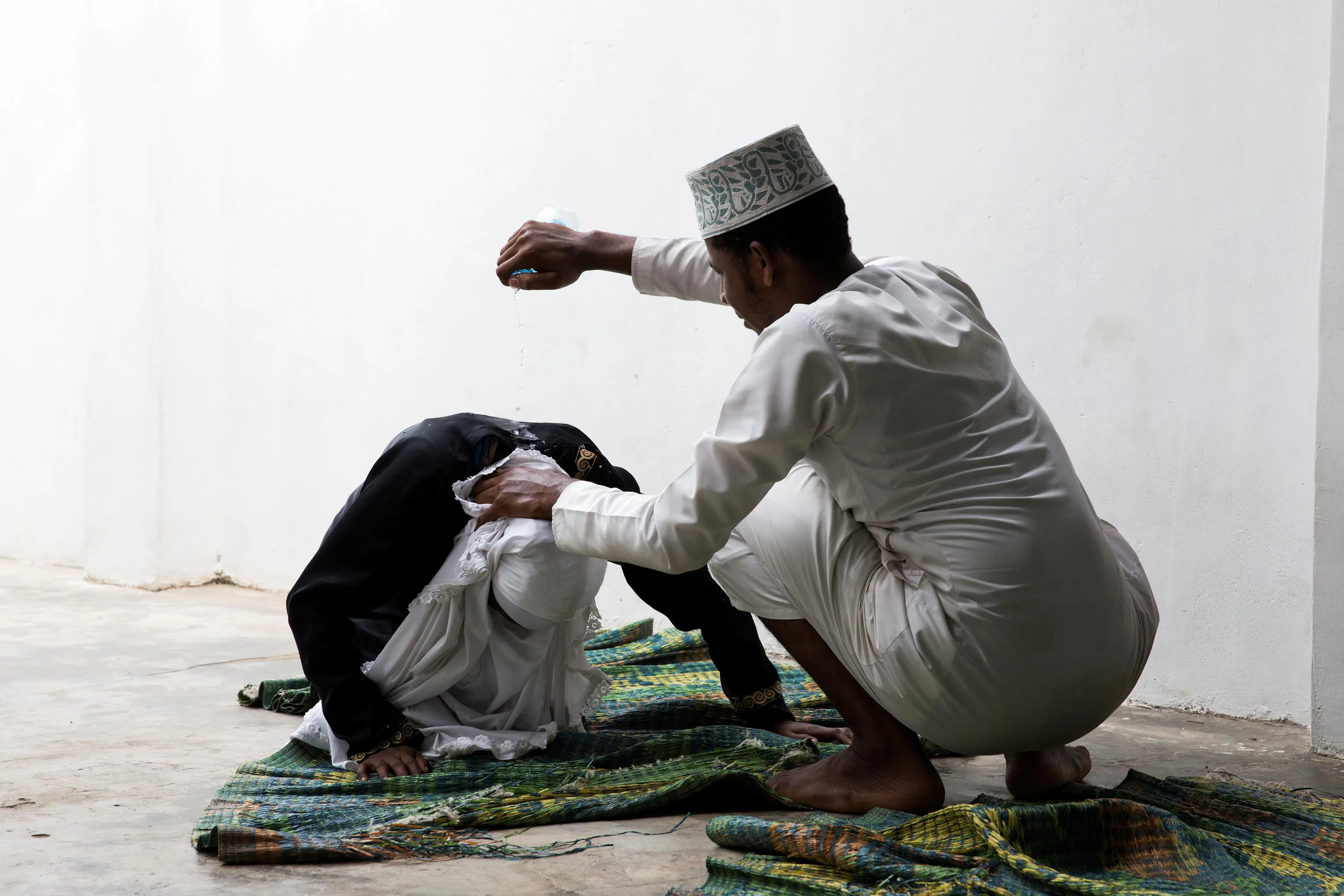 A sheikh tries to rouse a woman by pouring water on her neck in Zanzibar City, Tanzania, February 17, 2019. The woman believes she is possessed by supernatural spirits like djinns. (Photo by Nicky Woo/Reuters)