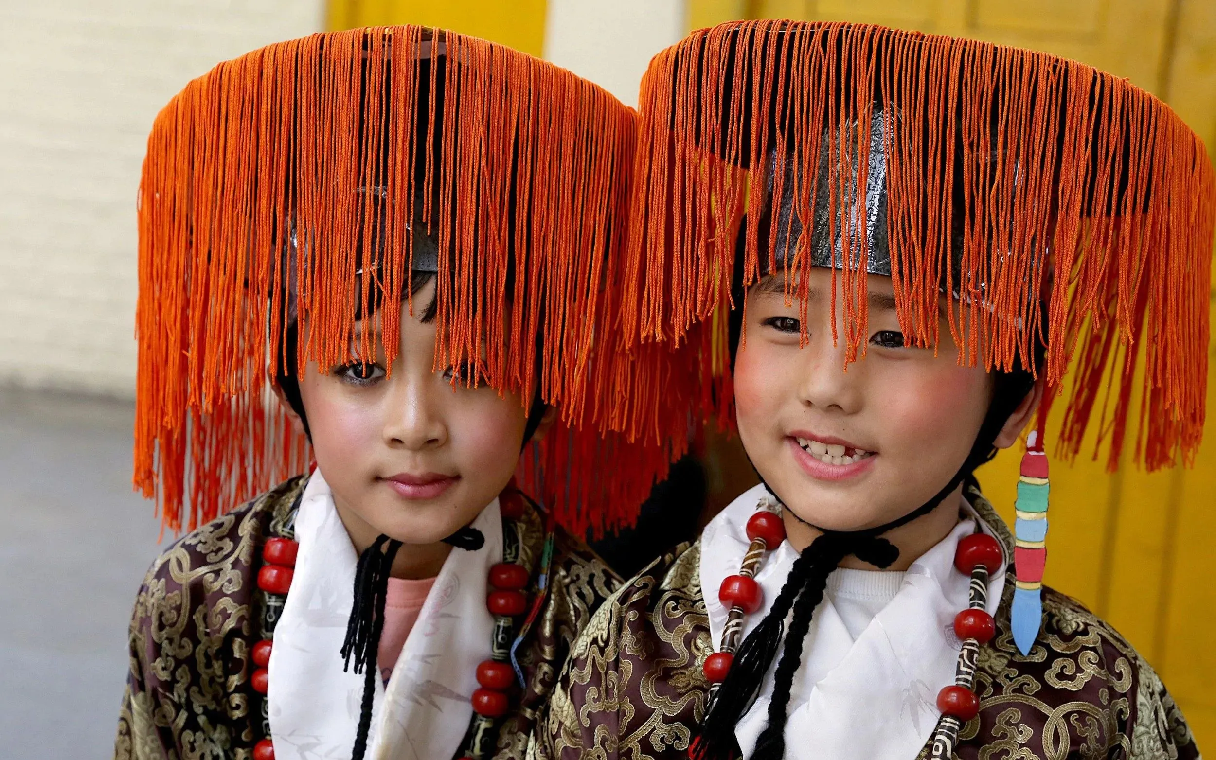 Tibetan boys living-in-exile in India wearing tradtional clothes wait to participate in a cultural program to celebrate the 59th anniversary of Tibetan Democracy Day at the main Tibetan Tsuglagkhang temple in McLeod Ganj, near Dharamsala, India, 02 September 2019. On 02 September 1960, the first members of the Tibetan Parliament-in-exile in India formally took their oath of office, establishing the democratic system of Tibet. (Photo by Sanjay Baid/EPA/EFE/Rex Features/Shutterstock)