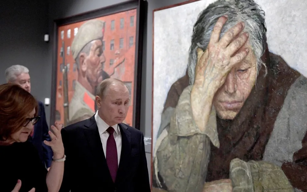 Zelfira Tregulova, Director of the State Tretyakov Gallery, and Russia's President Vladimir Putin (L-R front) visit the 18th Orthodox Russia Exhibition Forum held at the Manege Central Exhibition Hall in Moscow, Russia on November 4, 2019, to mark National Unity Day annually celebrated in Russia on November 4. (Photo by Alexei Nikolsky/Russian Presidential Press and Information Office/TASS)