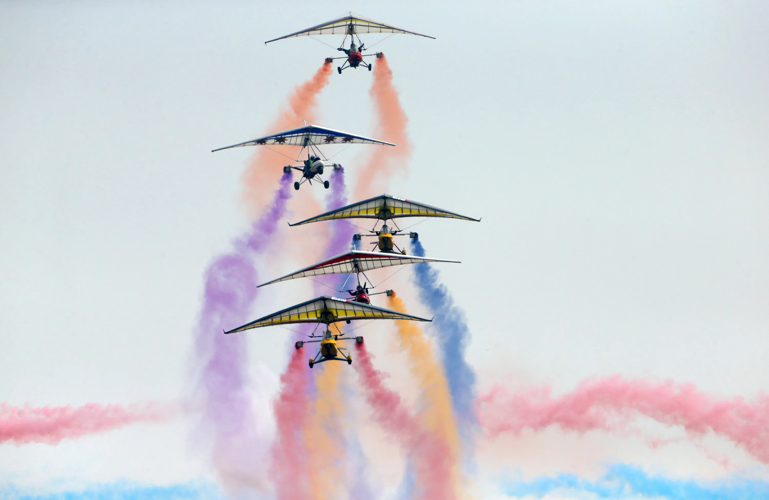 An aircraft team performs during an international general aviation show at the Yaocheng airport in Taiyuan, Shanxi province, China on October 11, 2019. (Photo by Reuters/China Daily)