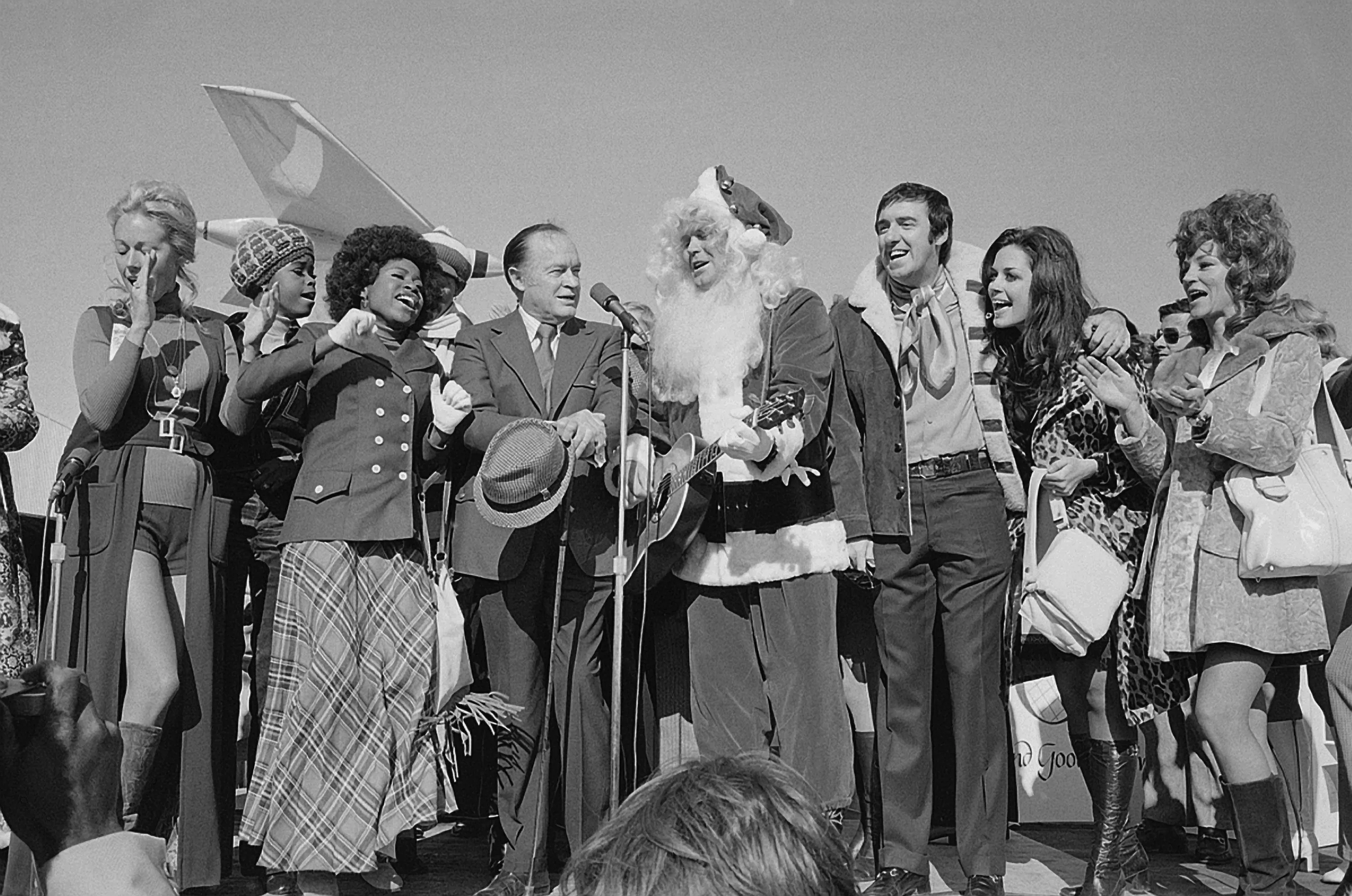 Santa Claus in the person of Glen Campbell leads Bob Hope and members of his entertainment troupe in “A Christmas Carol” December 15, 1971 in Hollywood, Calif. (Photo by AP Photo)