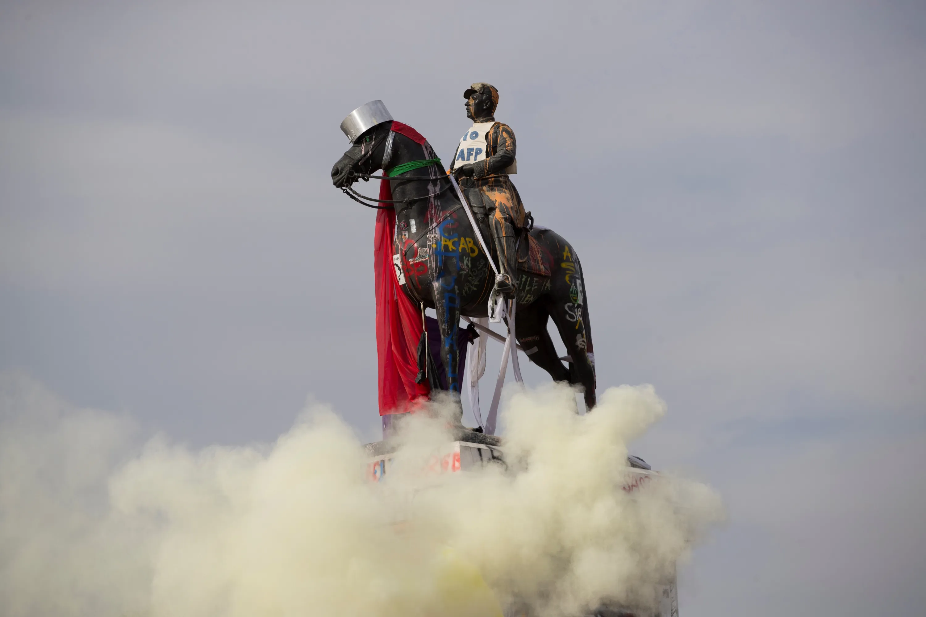 Demonstrators clash with Carabineros national police during another day of protest, in Santiago, Chile, 11 November 2019. Guilds of students, teachers, health workers and citizens returned to protest on the streets of Chile to request guaranteed basic rights while the government analyzes possibilities to change or reform the Constitution. The demonstrations went on from morning to sunset in several cities, to demand free public education, improvements in the health system and reforms in the pension system. (Photo by Orlando Barría/EPA/EFE)