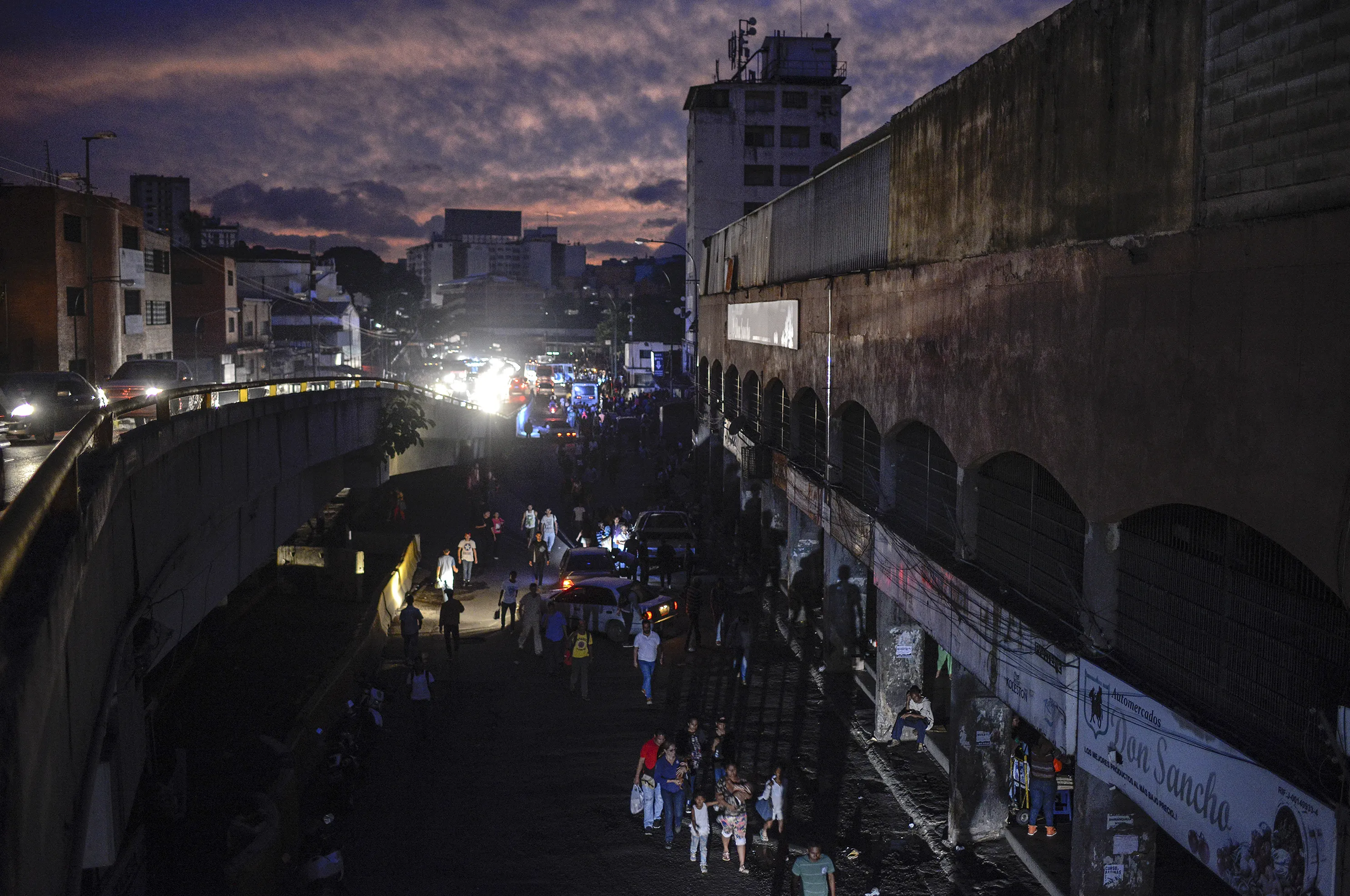 People are seen in the streets of Petare neighbourhood after Caracas and other parts of Venezuela were hit by a massive power cut on July 22, 2019. The lights went out in most of Caracas causing traffic jams and sending people back home on foot after the metro stopped running, while people in other parts of the country took to social media to report the power had gone out there too. The state-owned power company CORPOELEC only reported a breakdown affecting sectors of Caracas. (Photo by Matias Delacroix/AFP Photo)