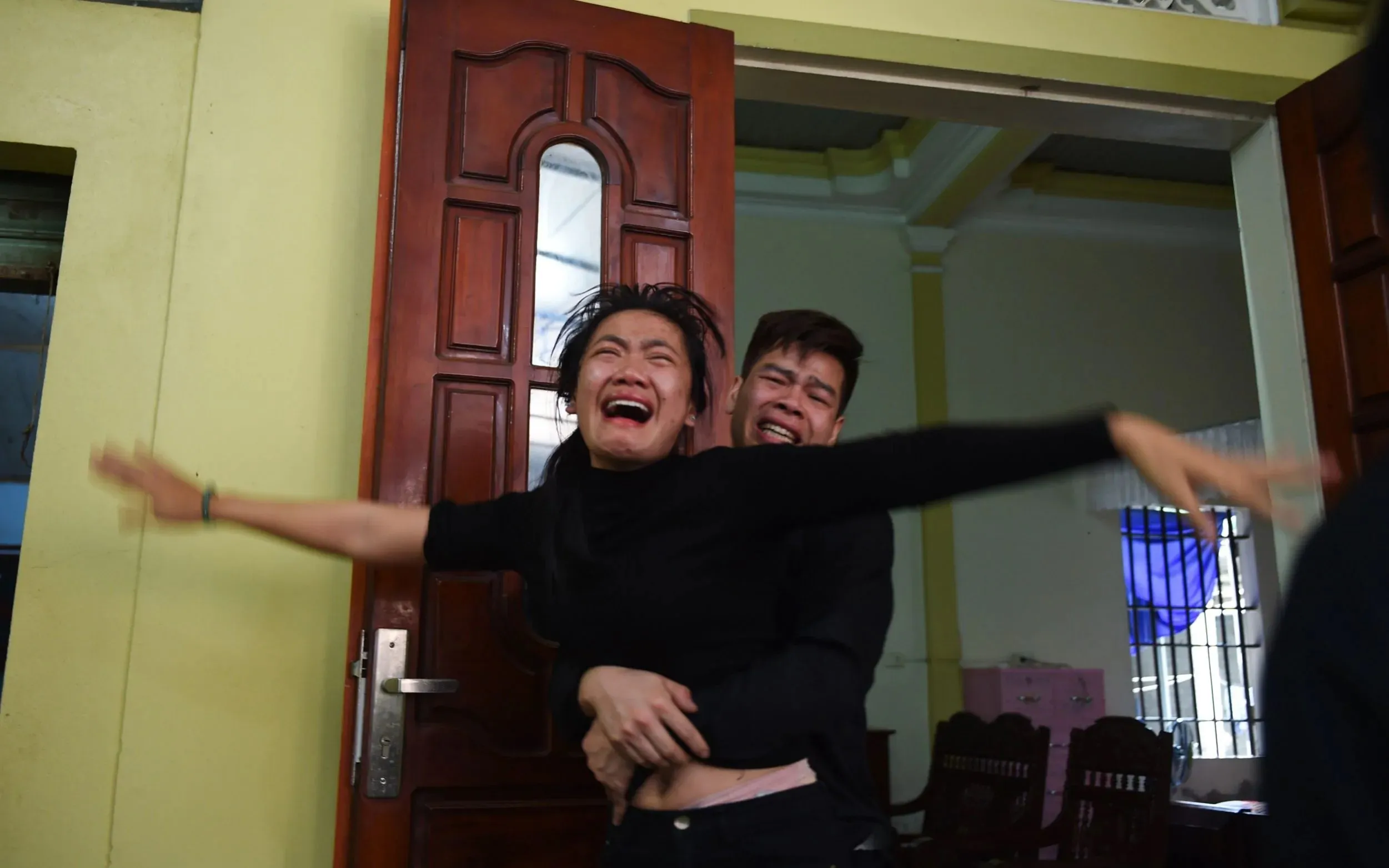 Relatives grieve as the casket bearing the body of Nguyen Van Hung arrived home in Dien Chau district, Nghe An province on November 27, 2019 after being repatriated from Britain. The first remains of the 39 people found dead in a truck in Britain last month arrived in Vietnam early November 27, capping a weeks-long wait by families eager to bury their loved ones. (Photo by Nhac Nguyen/AFP Photo)