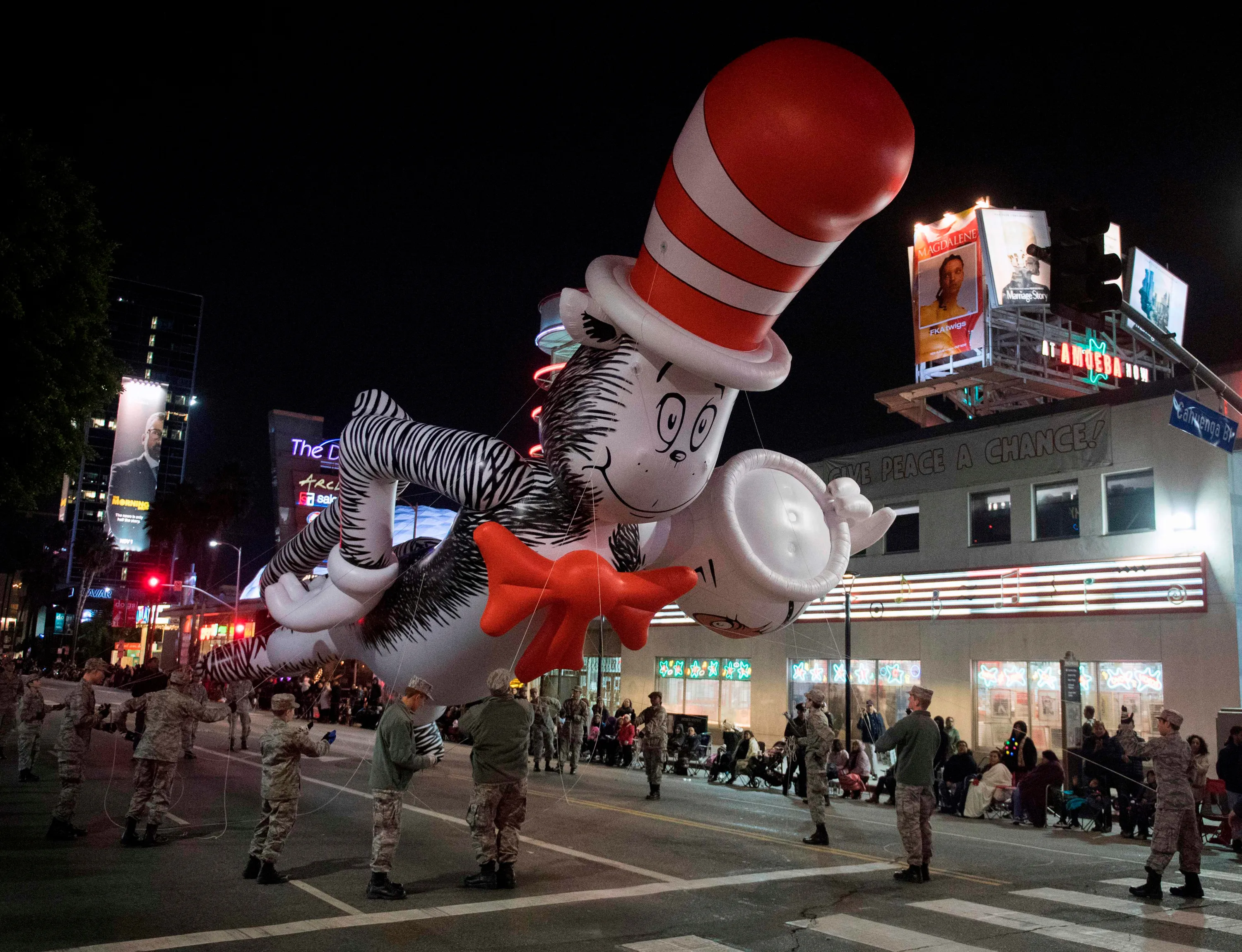 A Dr. Seuss balloon character is floated down Sunset Blvd during the 88th annual Hollywood Christmas Parade in Hollywood, California on December 1, 2019. (Photo by Mark Ralston/AFP Photo)