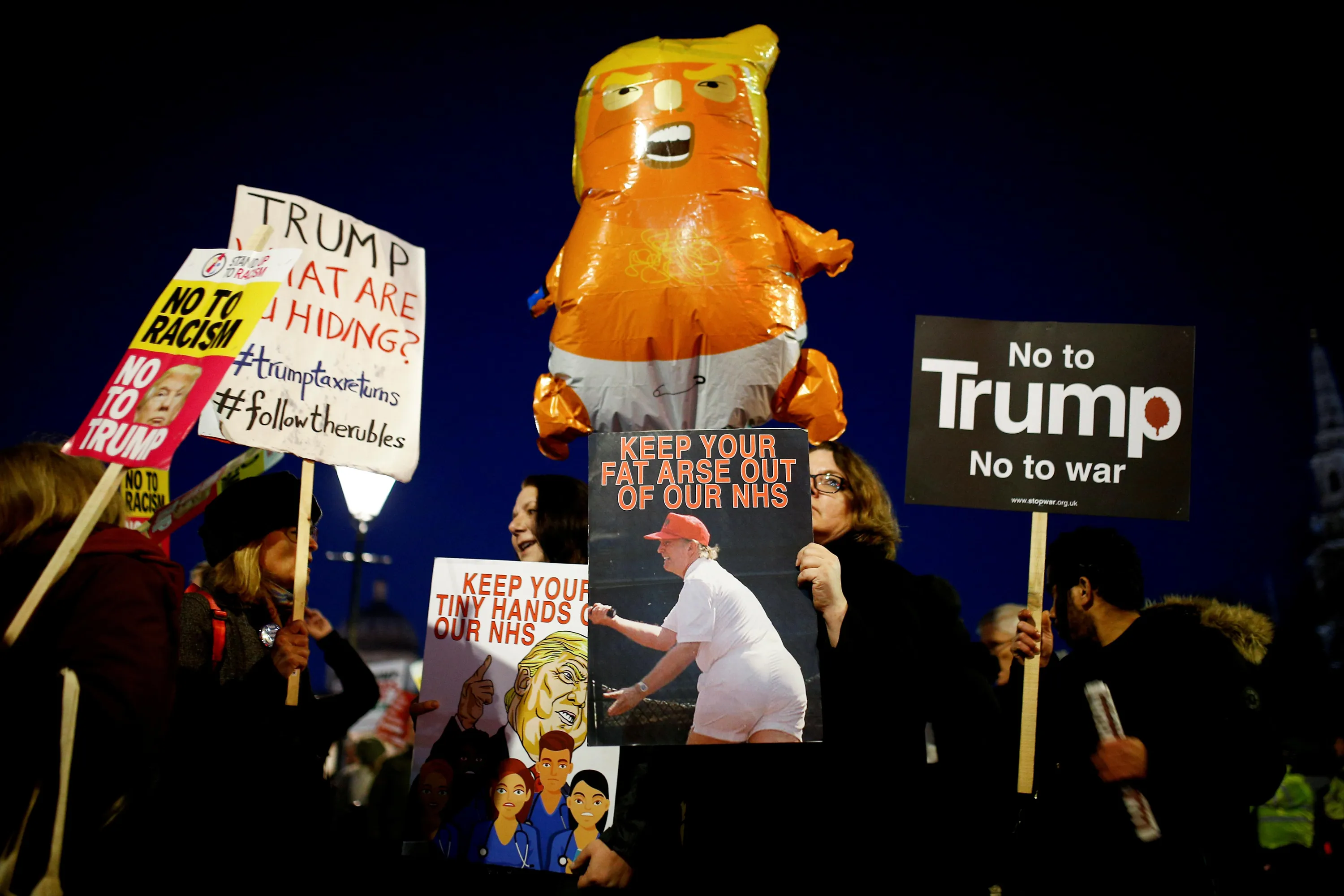 Protesters hold placards and ballots as they attend a demonstration during U.S. President Donald Trump's visit for NATO summit, in London, Britain on December 3, 2019. (Photo by Henry Nicholls/Reuters)