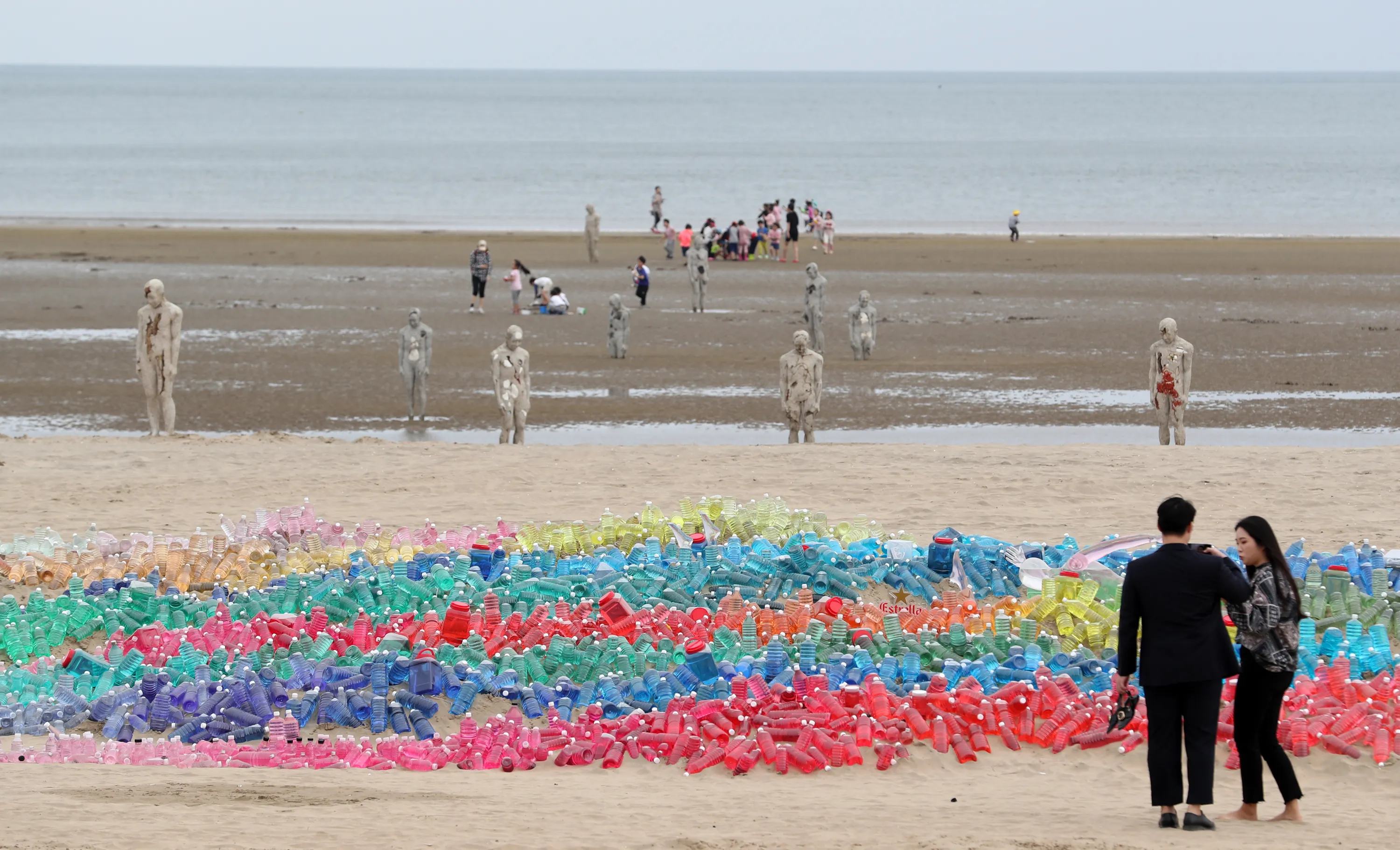 Artworks for the 2019 Sea Art Festival are on display on Dadaepo Beach in the southeastern port city of Busan, South Korea, 27 September 2019. The festival, slated to run from 27 September until 28 October 2019. (Photo by EPA/EFE/Yonhap)