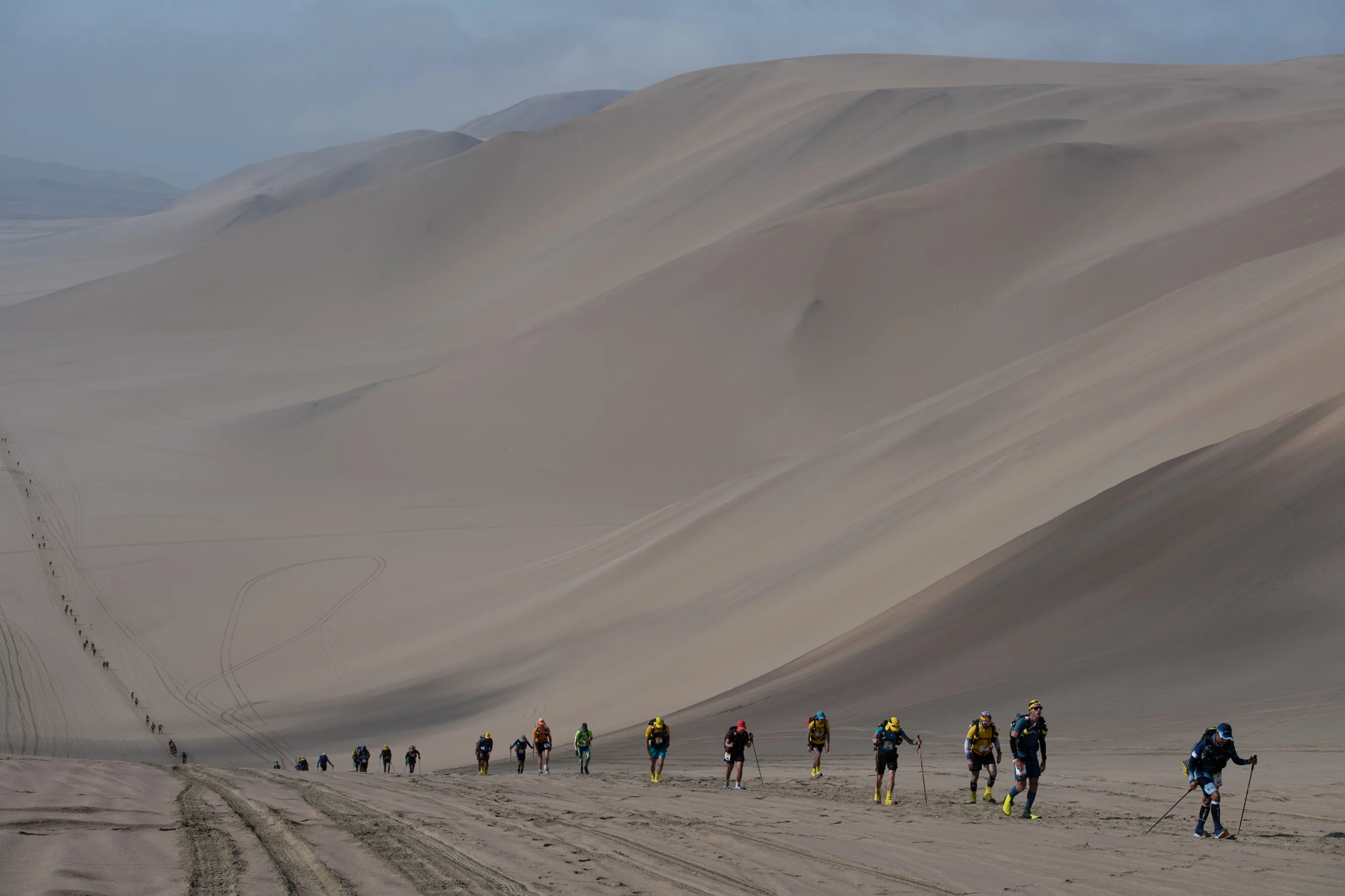 Competitors take part in the second stage of the 2nd Half Marathon of Sables Ica Desert-Peru, in Paracas, Peru, on December 3, 2019. Competitors compete in the race of 109 km divided into 3 stages through the Ica Desert at a free pace and in self-sufficiency conditions from December 1 to December 6, 2019. (Photo by Martin Bureau/AFP Photo)