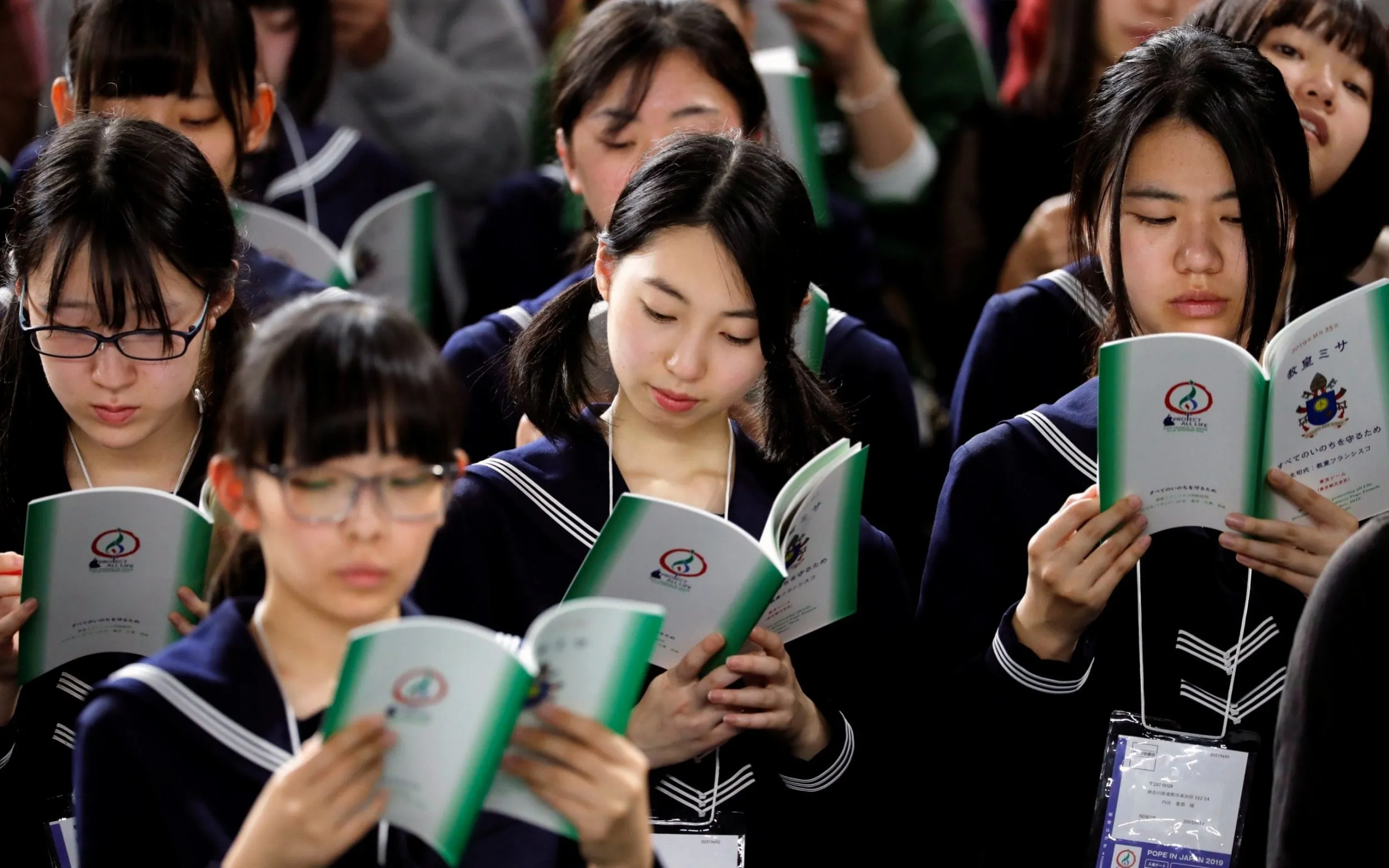 Students attend a Holy Mass held by Pope Francis at the Tokyo Dome, in Tokyo, Japan, November 25, 2019. (Photo by Remo Casilli/Reuters)