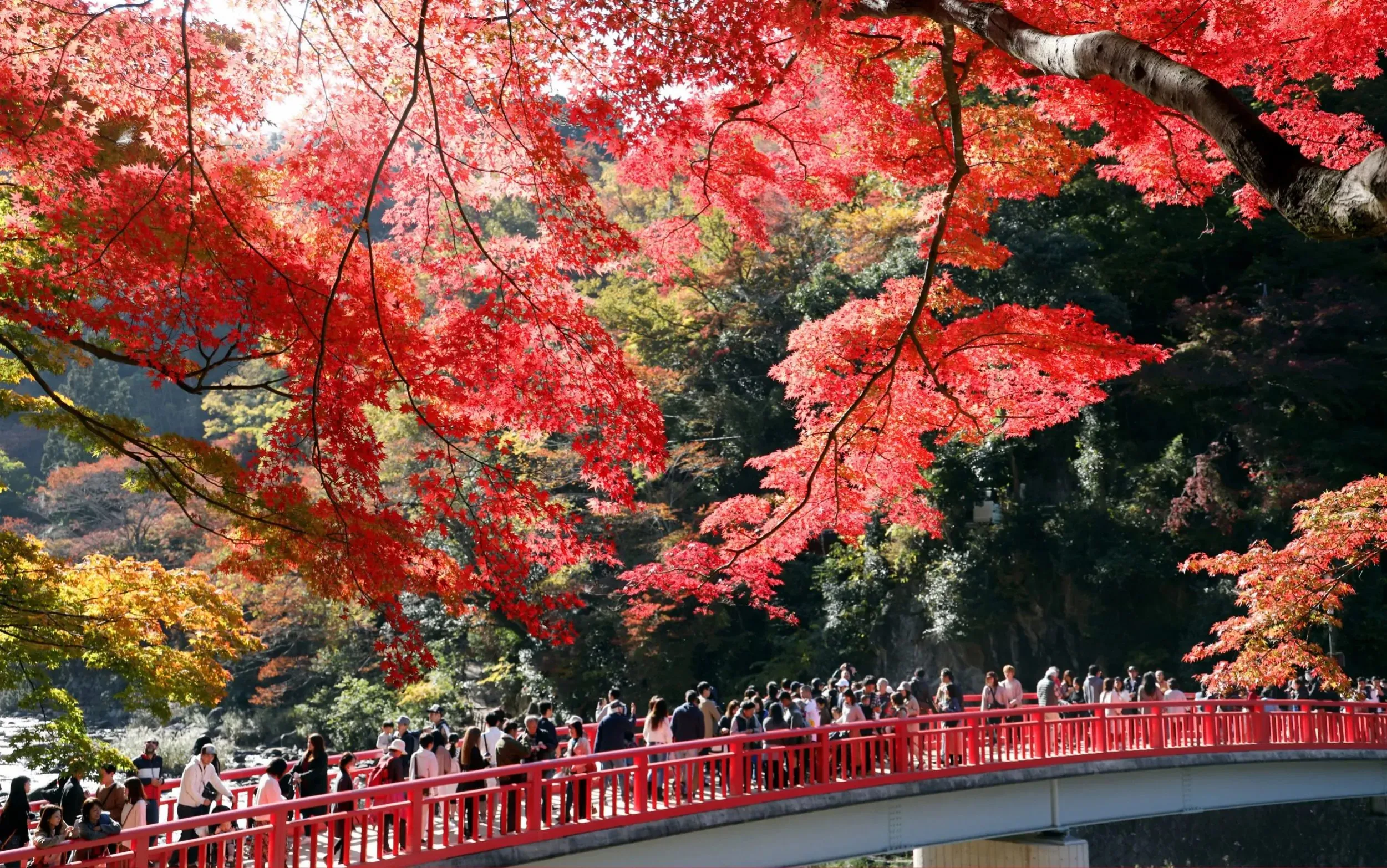 Visitors enjoy autumn colours at Korankei Valley on November 17, 2019 in Toyota, Aichi, Japan. (Photo by The Asahi Shimbun via Getty Images)