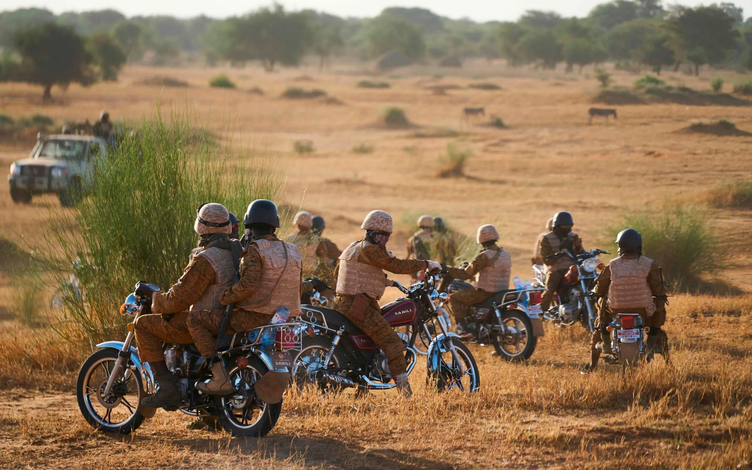 A group of soldiers of the Burkina Faso Army patrols a rural area during a joint operation with the French Army in the Soum region in northern Burkina Faso on November 10, 2019. (Photo by Michele Cattani/AFP Photo)