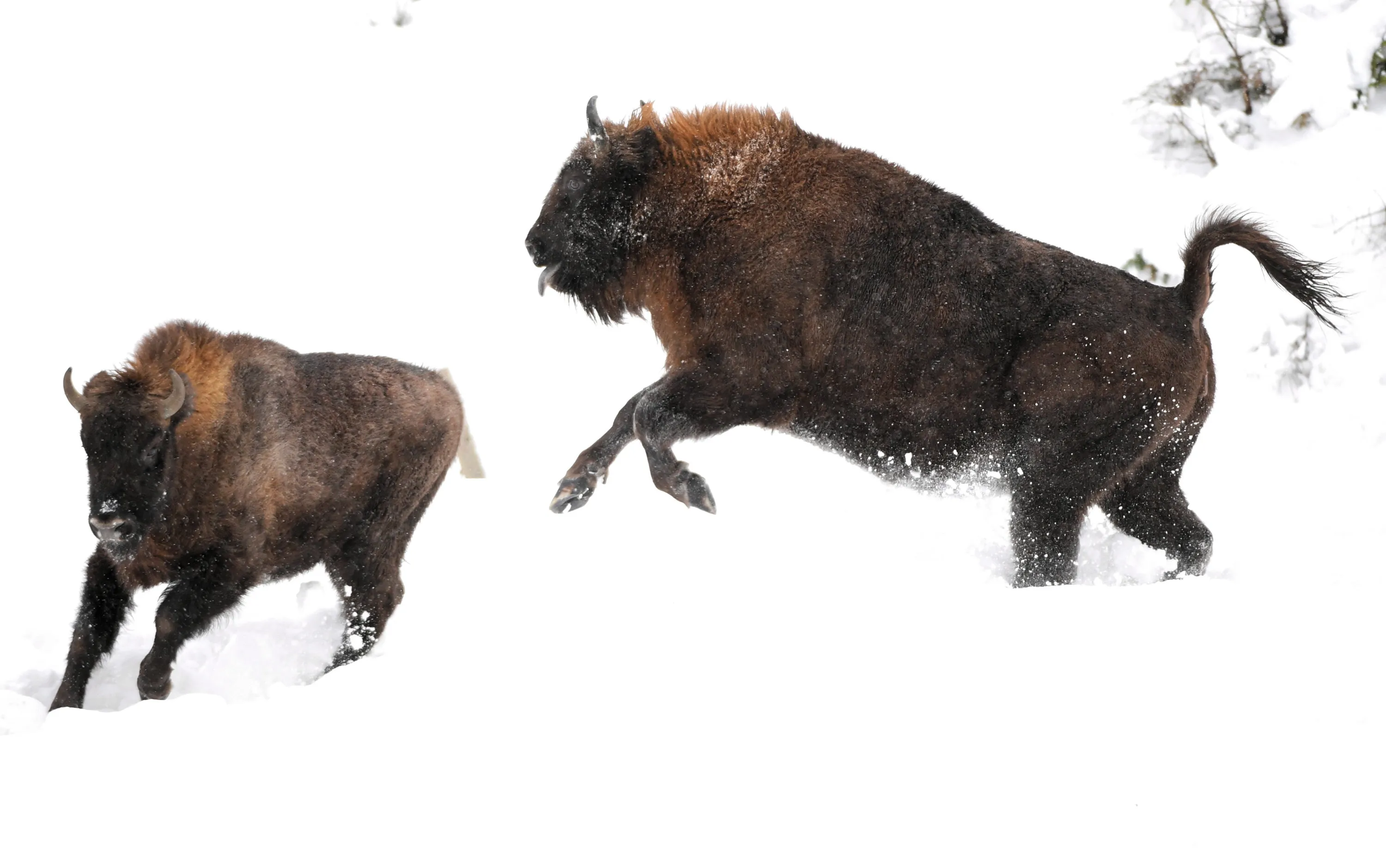 European bisons (also known as Wisent) at the Bison farm in Muczne, southeastern Poland, 30 December 2018. The Bison farm is a continuation of bison breeding in Bieszczady, which was started in 1963. Here visitors can admire the bison of Bialowieza-Caucasian line, also called the mountain race. The European Bison is the national animal of Poland. (Photo by Darek Delmanowicz/EPA/EFE)