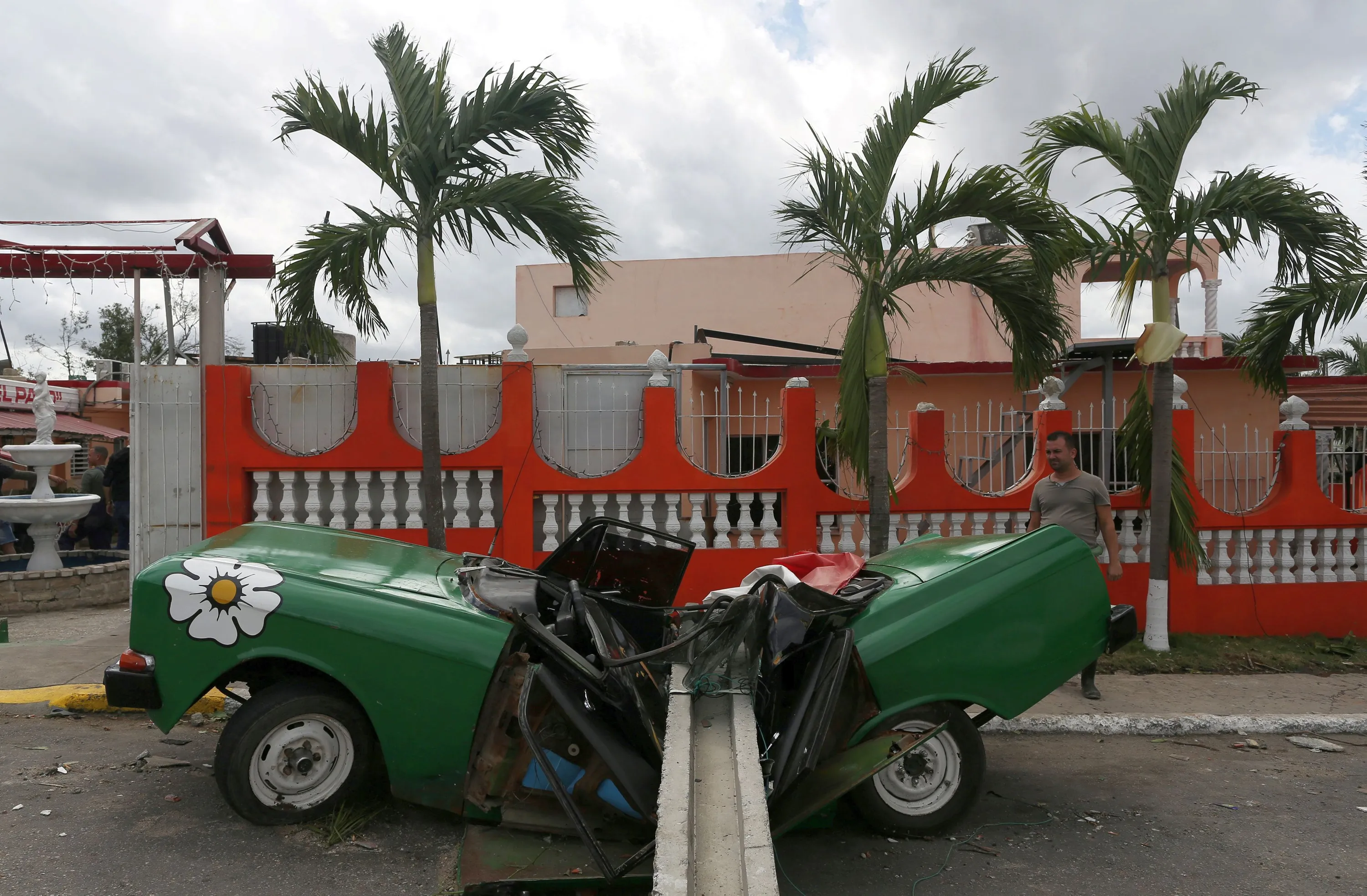 A man looks at a car hit by a post after a tornado ripped through a neighbourhood in Havana, Cuba on January 28, 2019. (Photo by Fernando Medina/Reuters)