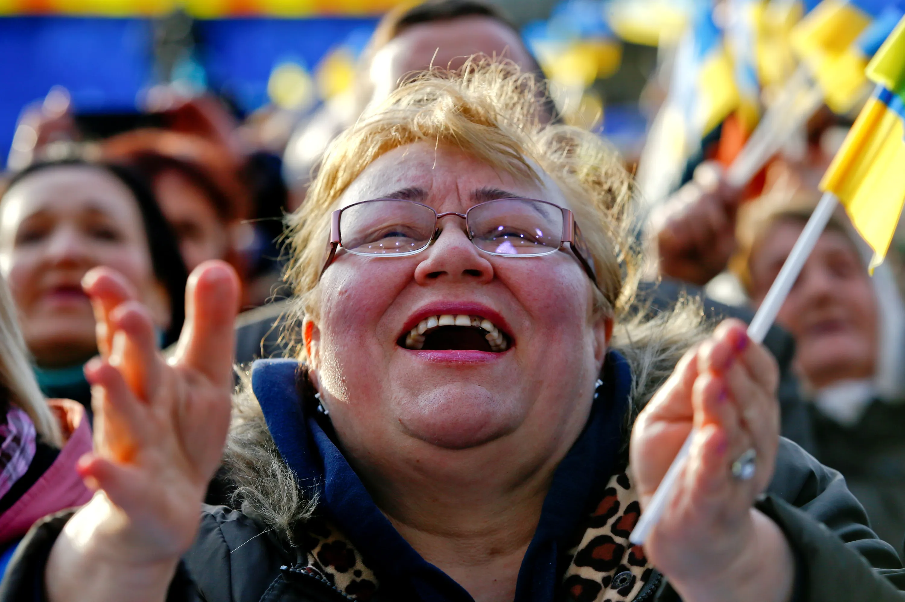 A supporter of Yulia Tymoshenko, leader of opposition Batkivshchyna party and presidential candidate, reacts at her last campaign rally in central Kiev, Ukraine, March 29, 2019. (Photo by Vasily Fedosenko/Reuters)